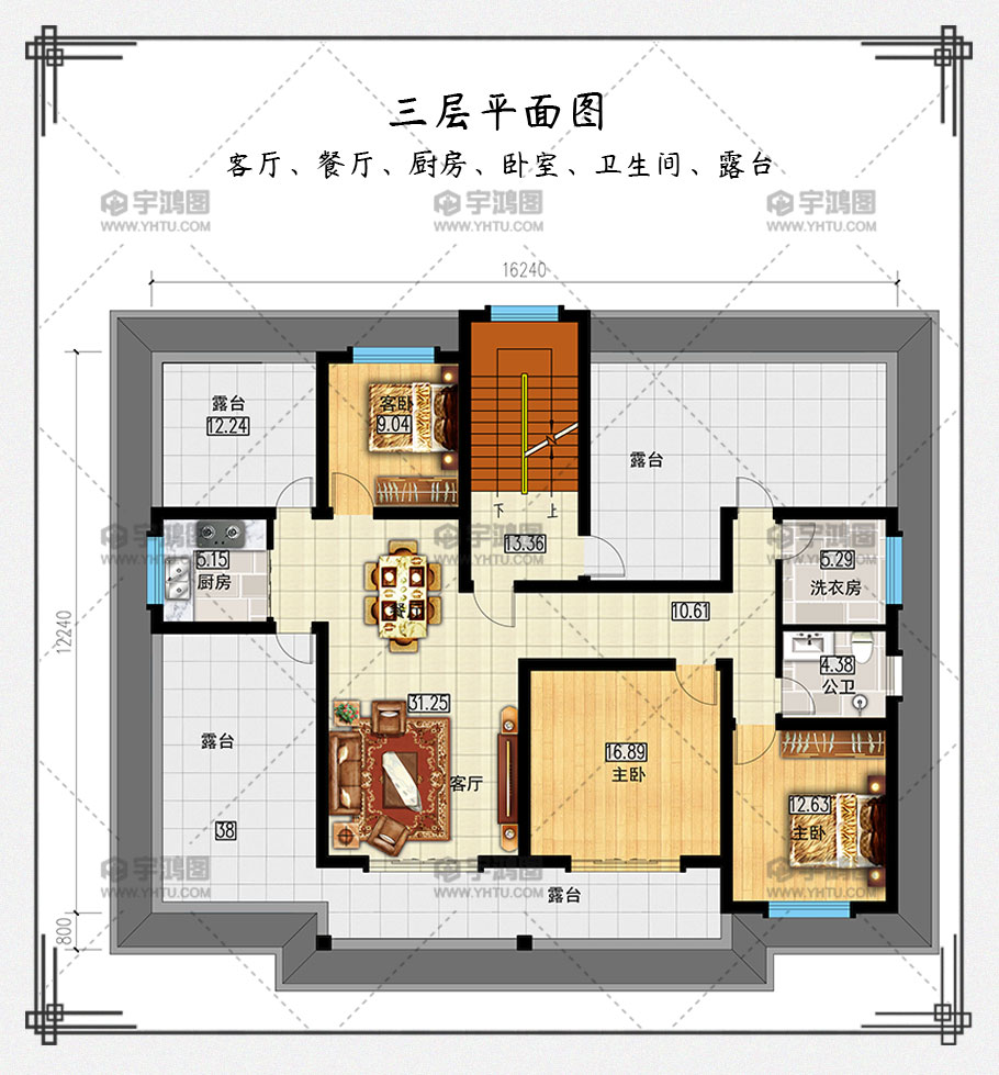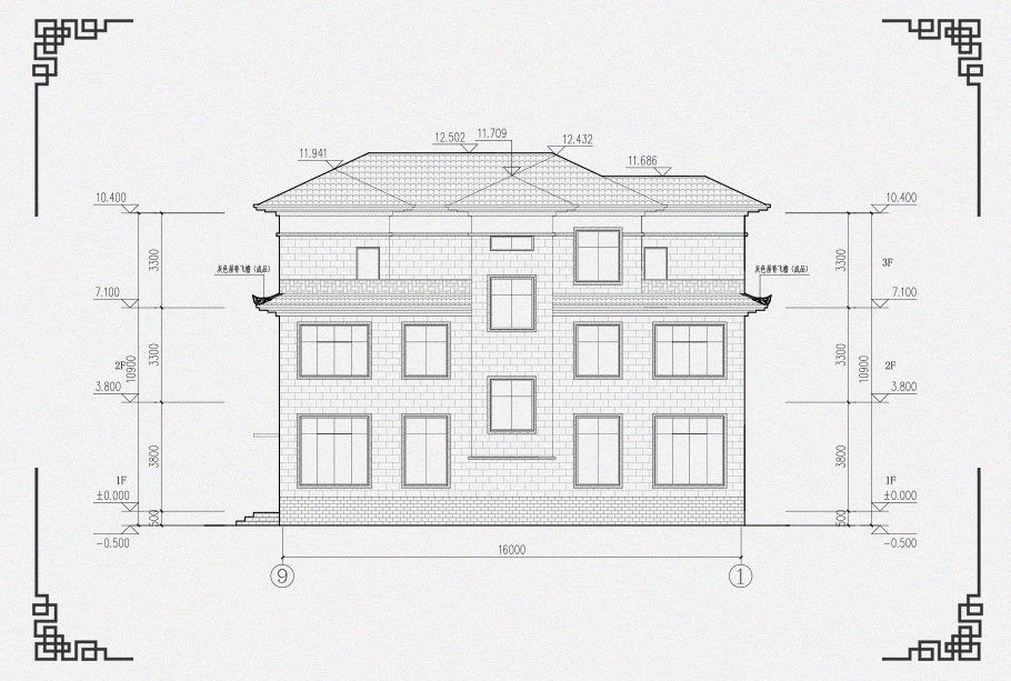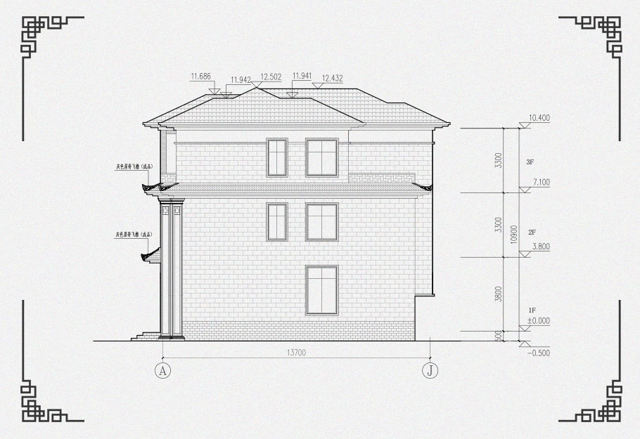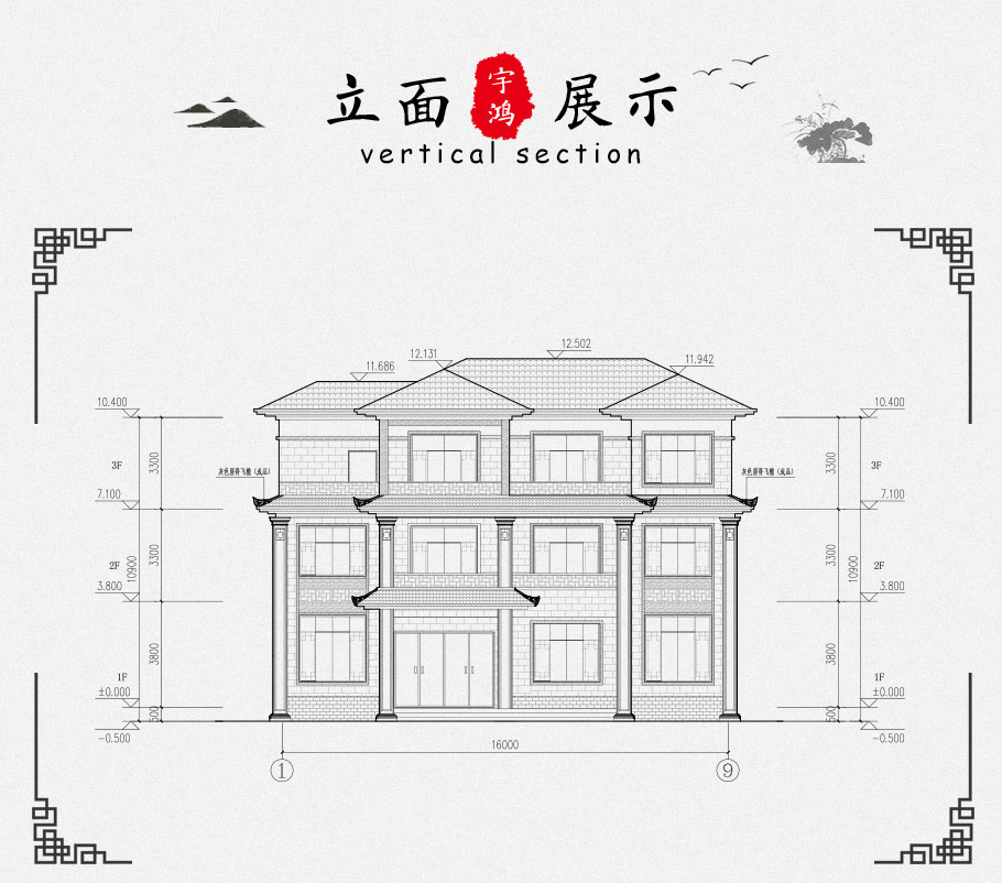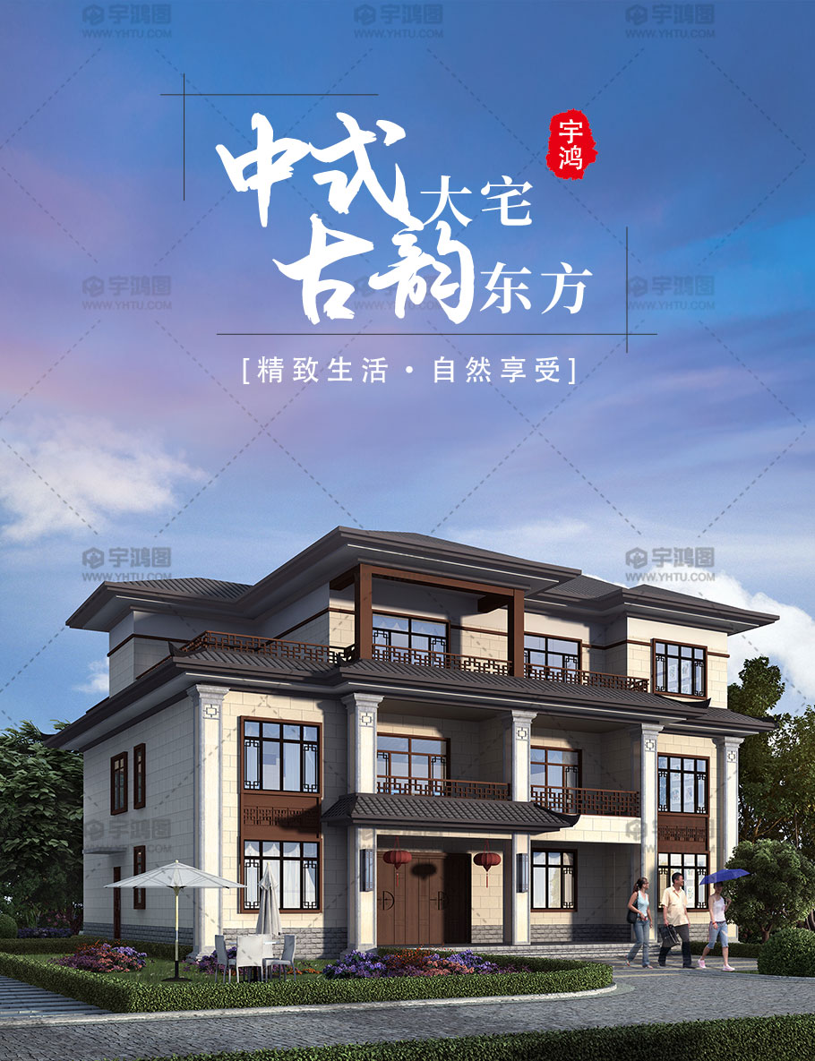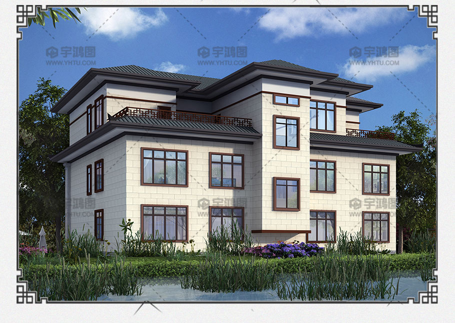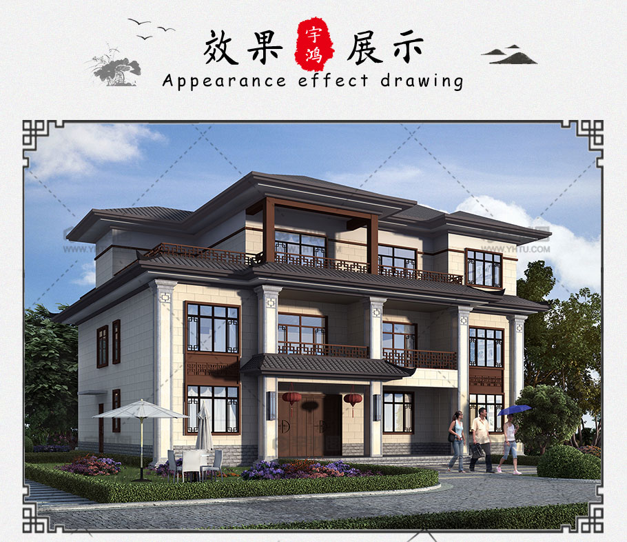 成品圖紙>經(jīng)典中式農(nóng)村三層40萬小別墅設計圖紙及效果圖