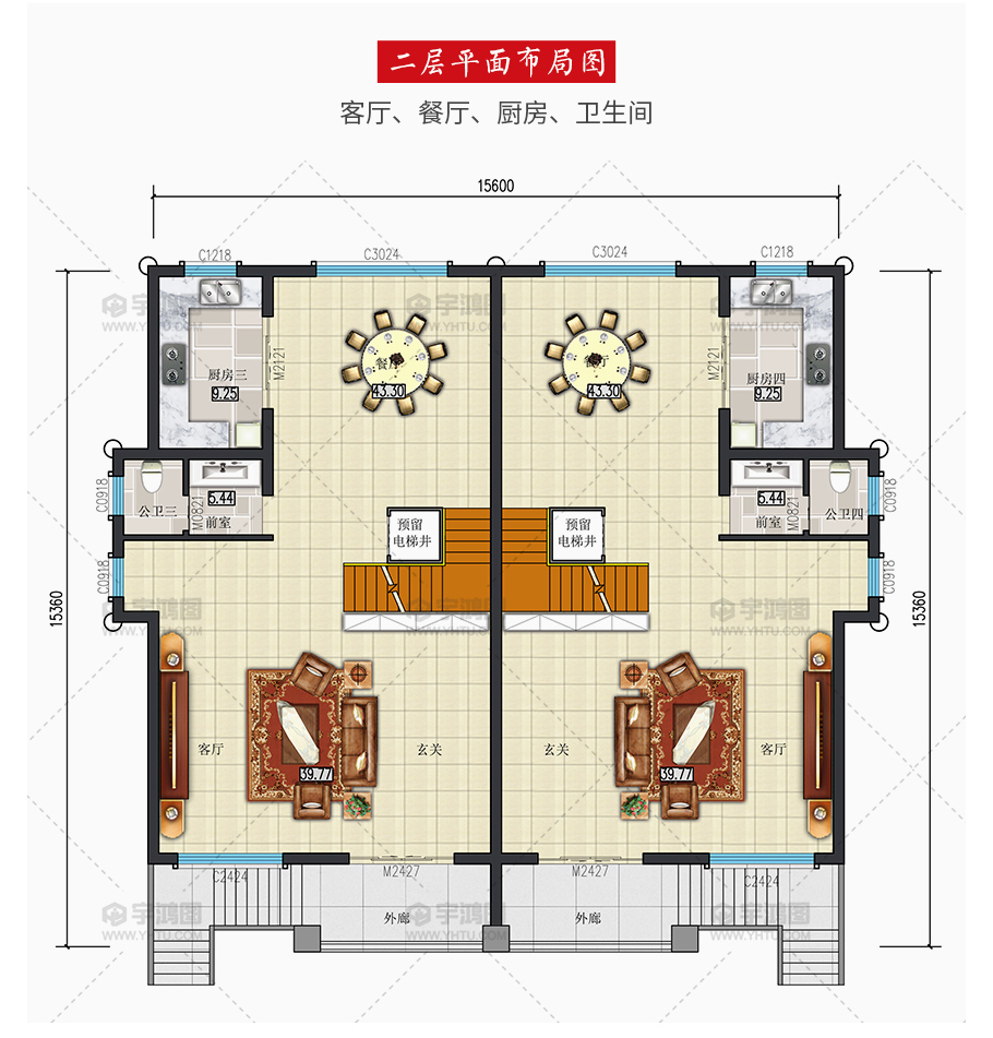 新款240平四層歐式兄弟雙拼農村別墅設計圖