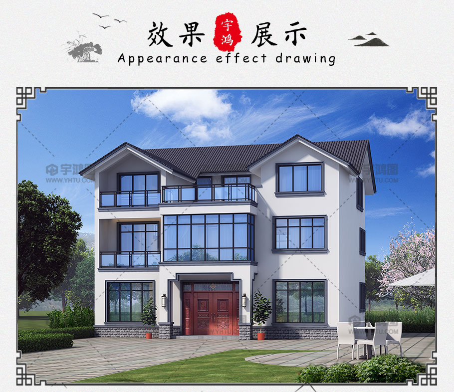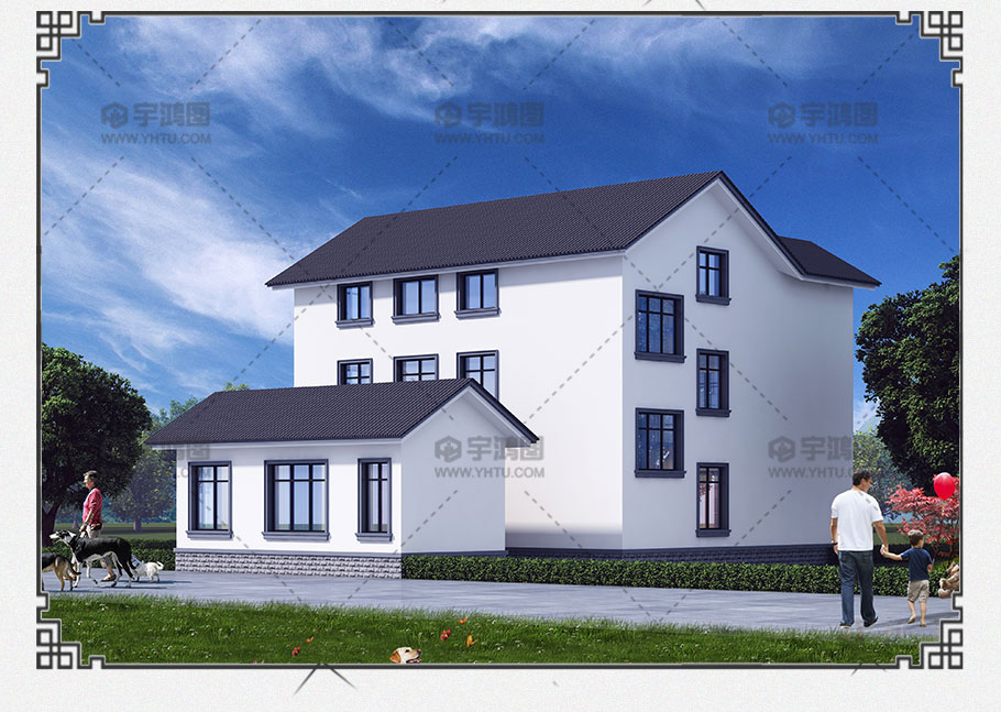 廚房單獨建的30萬三層中式帶堂屋農村房屋設計圖紙,戶型設計簡約美觀,采用坡屋頂,是農村常見的屋頂類型,三層的露臺實用性很高,可以晾曬,也可以賞景,還能打造創意屋頂花園,營造充滿生機的居住環境。外墻采淡白色真石漆裝飾,四面開設窗戶,室內通透采光,施工難度不高,成本也不高,特別適合普通農村家庭建造。