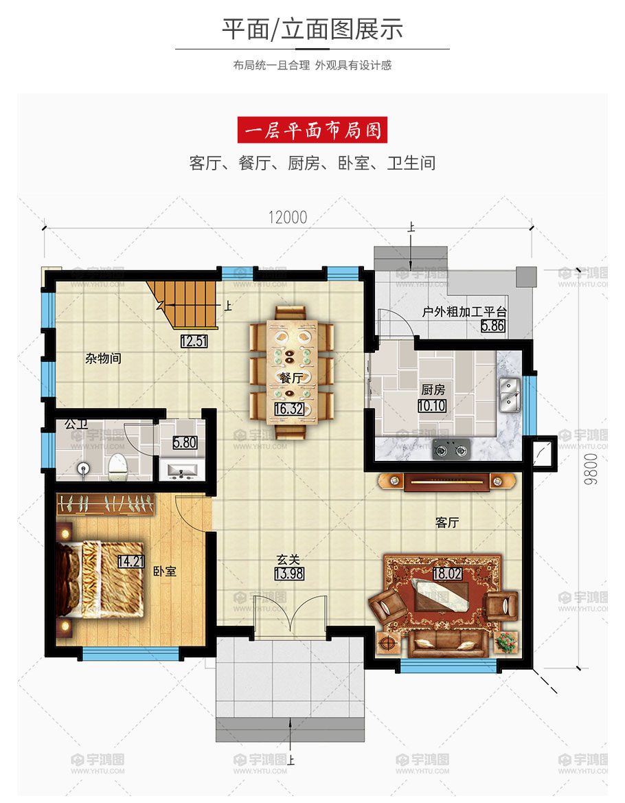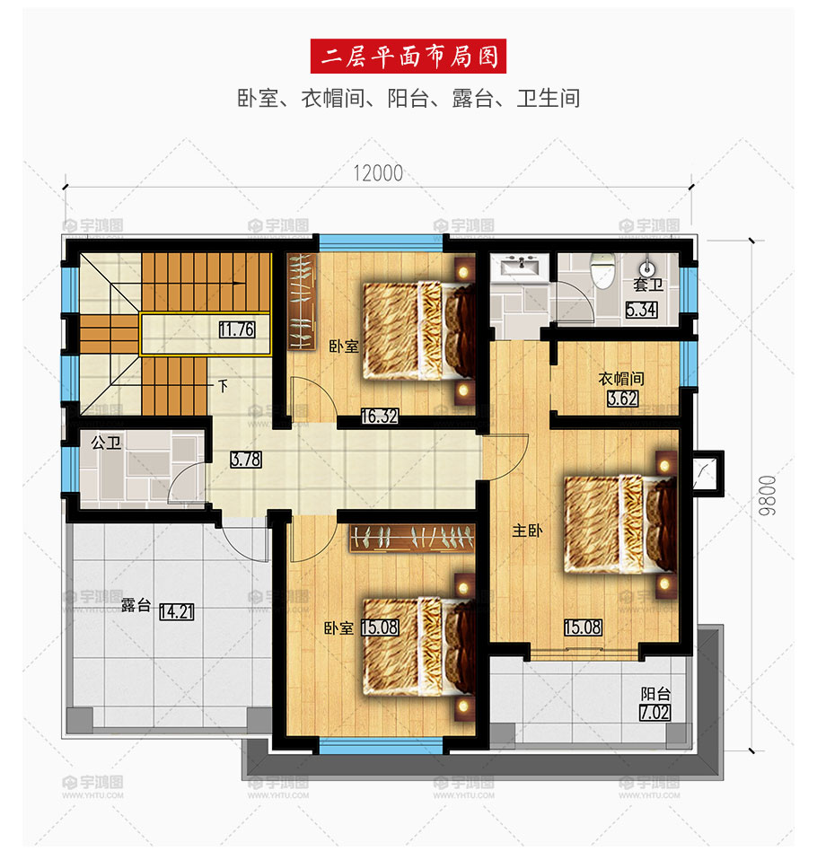 15萬元二層農村小別墅樓設計圖紙,戶型尺寸12x11米,占地面積120平方米