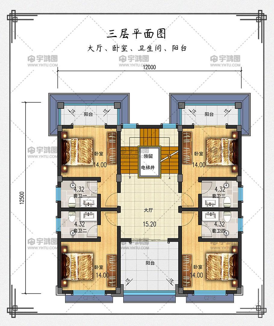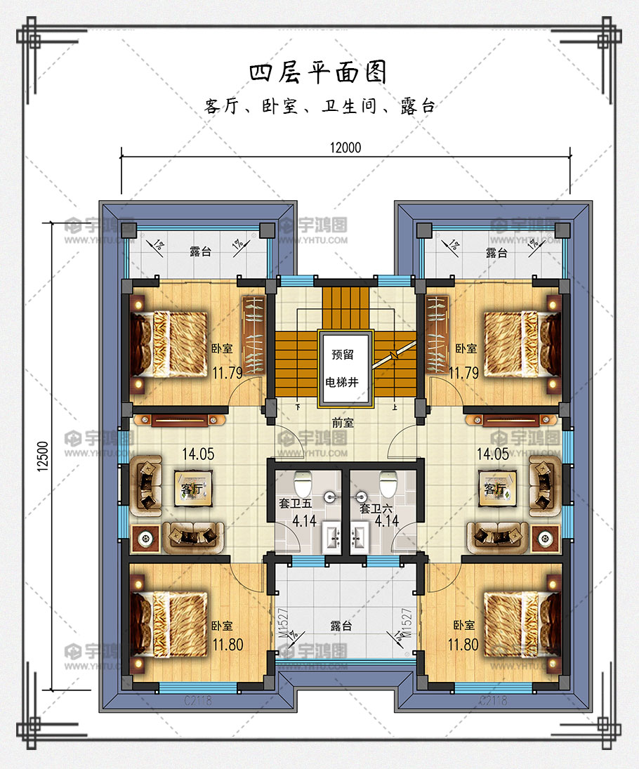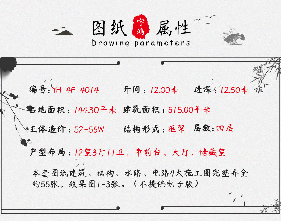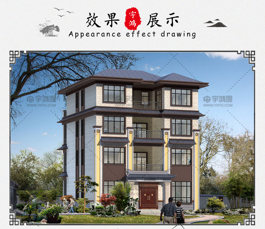 成品圖紙>帶電梯四層中式農(nóng)村別墅房屋設計圖,農(nóng)村豪宅首選