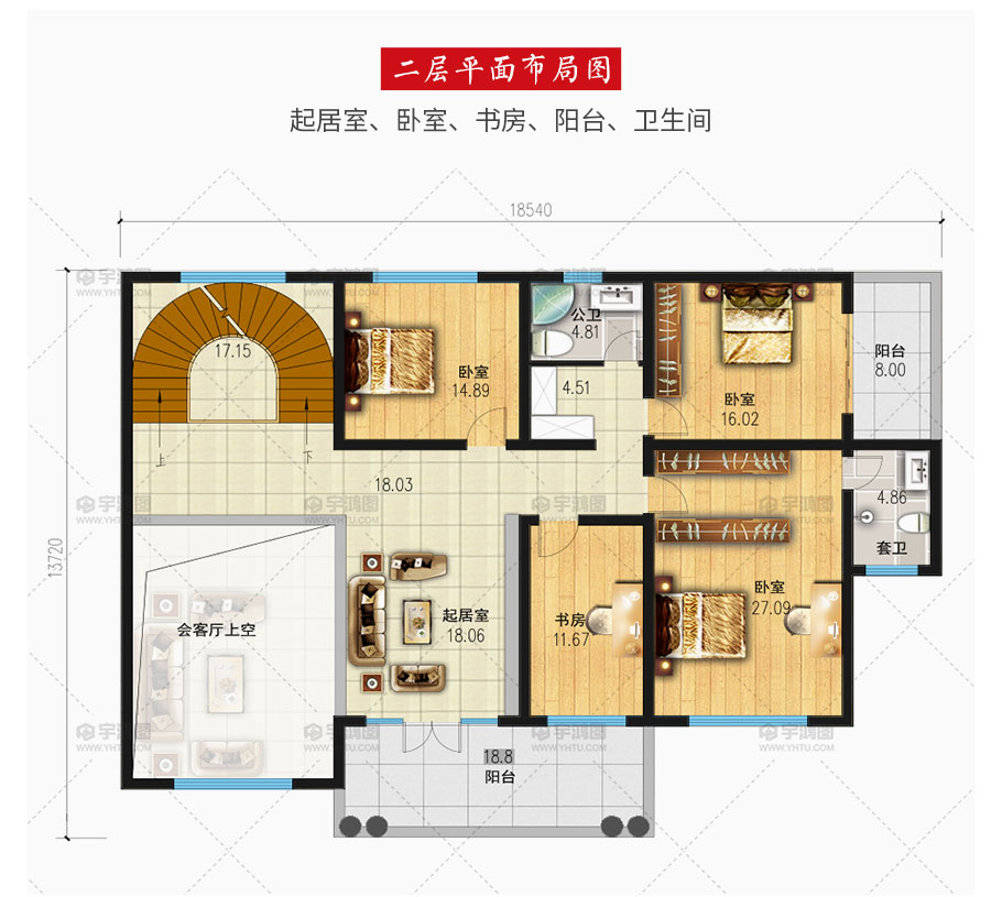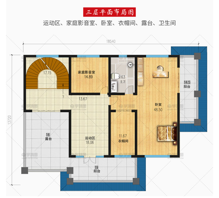 開間:18.54米 進深:13.72米 占地面積:201.3平方米 建筑面積:547.1平方米