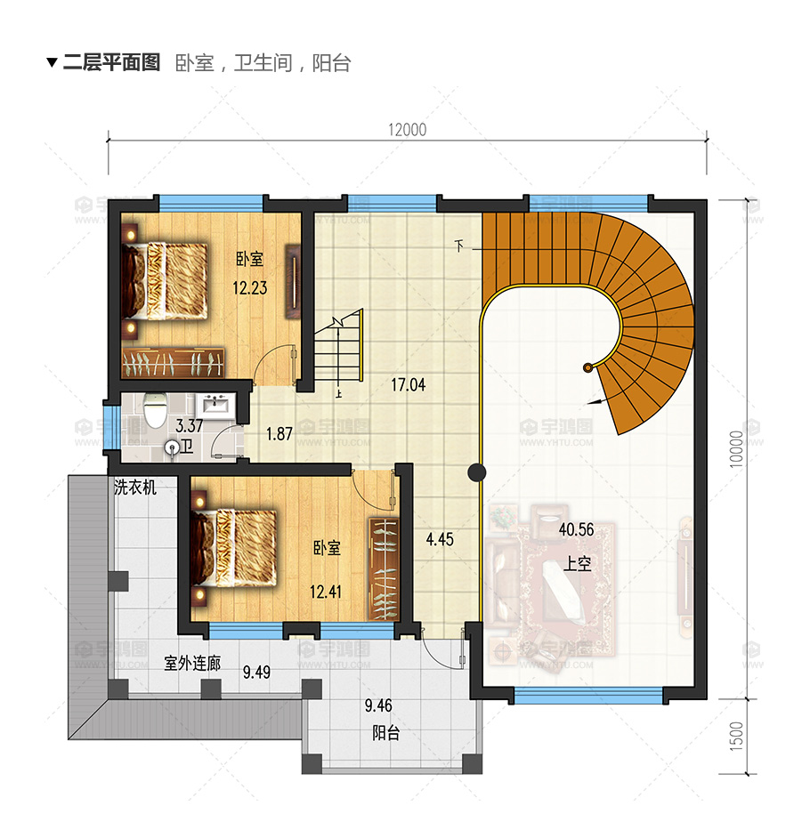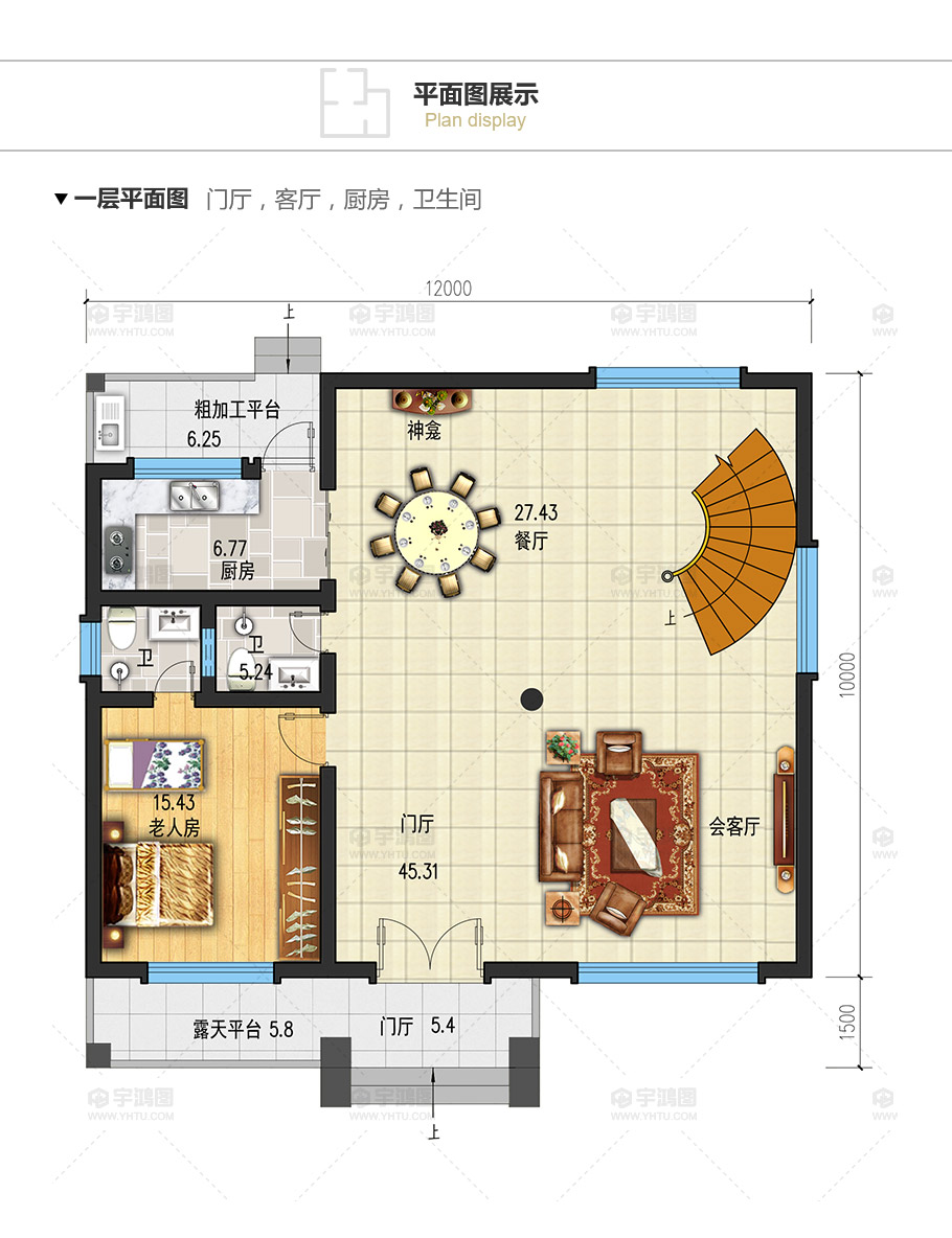 成品圖紙>120平帶挑空客廳農村房屋設計圖紙,外觀高端大氣