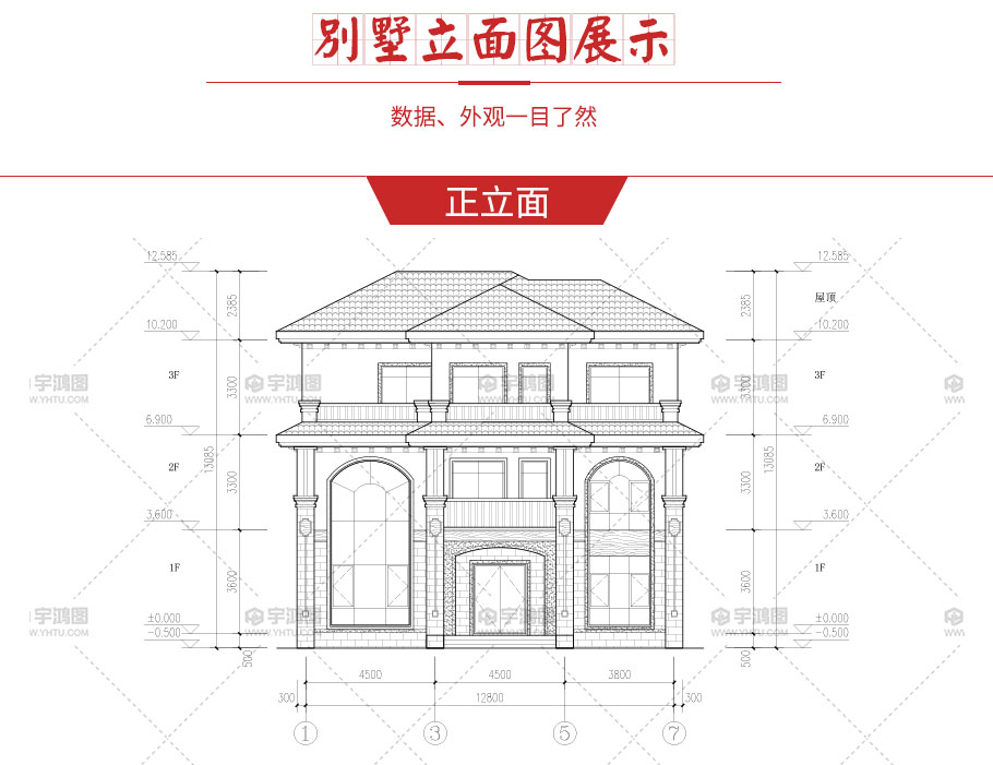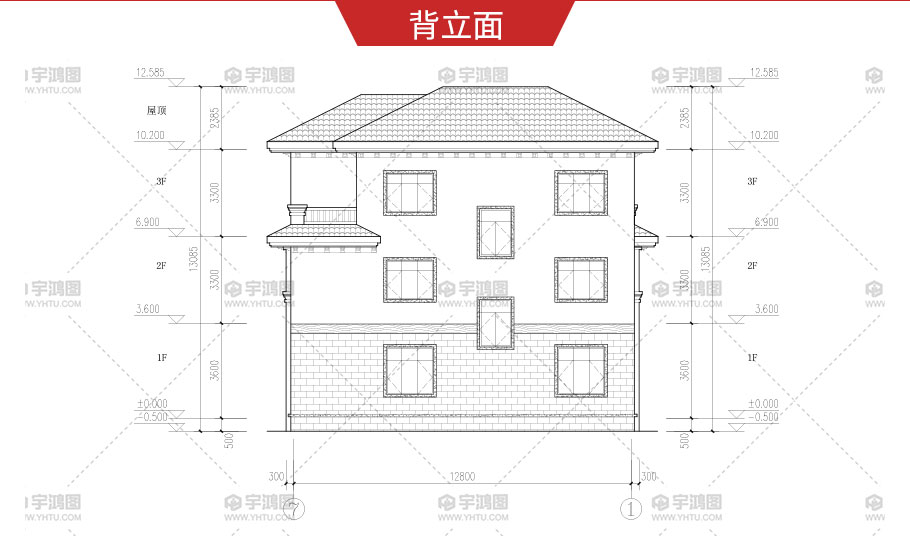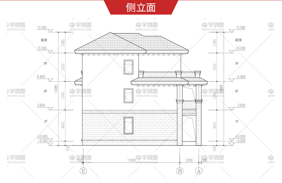 建筑立面圖:東立面圖,西立面圖,南立面圖,北立面圖,剖面圖;