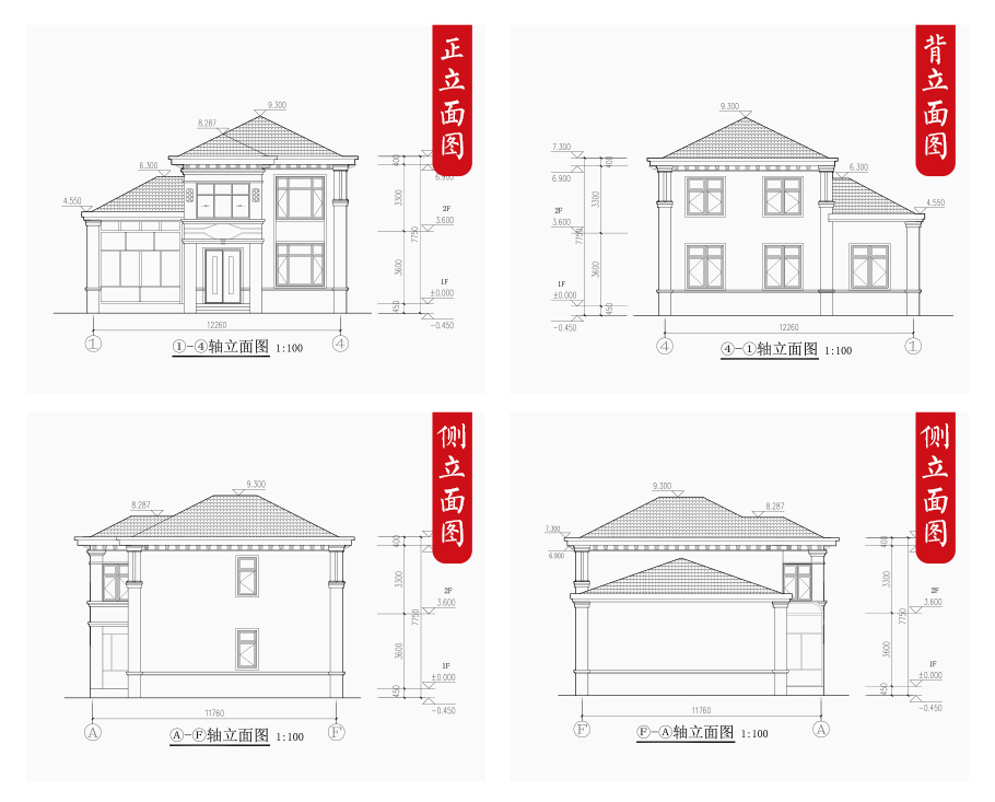 | 建筑圖: | 建筑平面圖:一層平面圖,二層平面圖; 建筑立面圖:東立面圖,西立面圖,南立面圖,北立面圖,剖面圖; 大樣圖:樓梯詳圖,細部大樣,門窗大樣 |