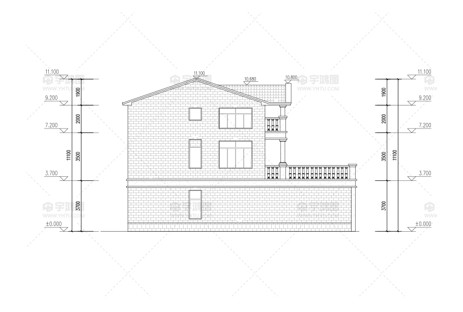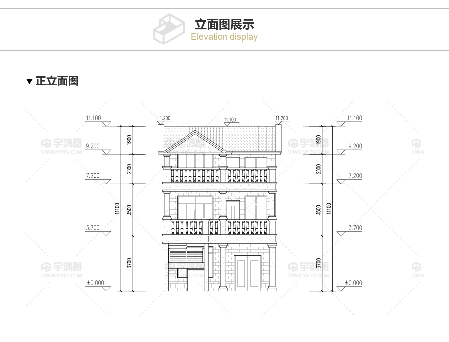 | 風格:歐式 | 層數:三層 | 結構形式:磚混結構 | 圖紙編號:YH-A-3021 |