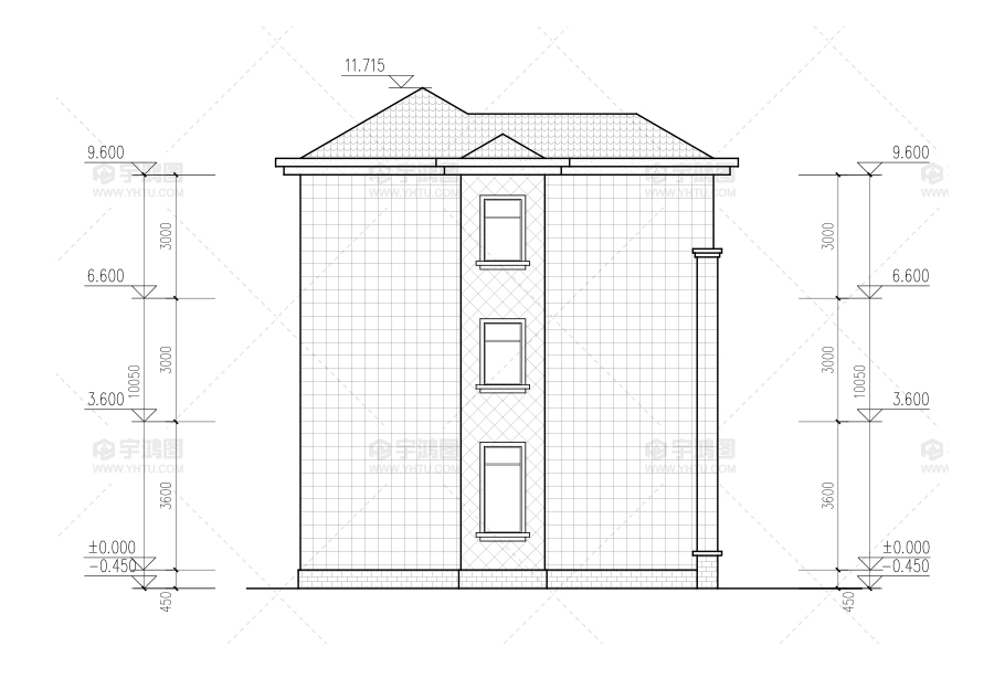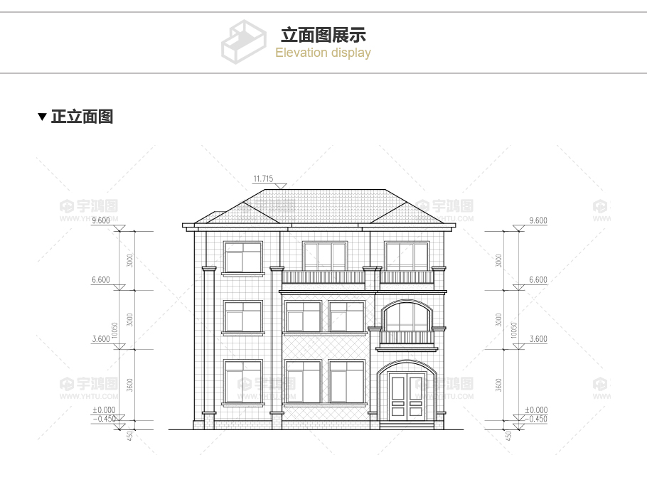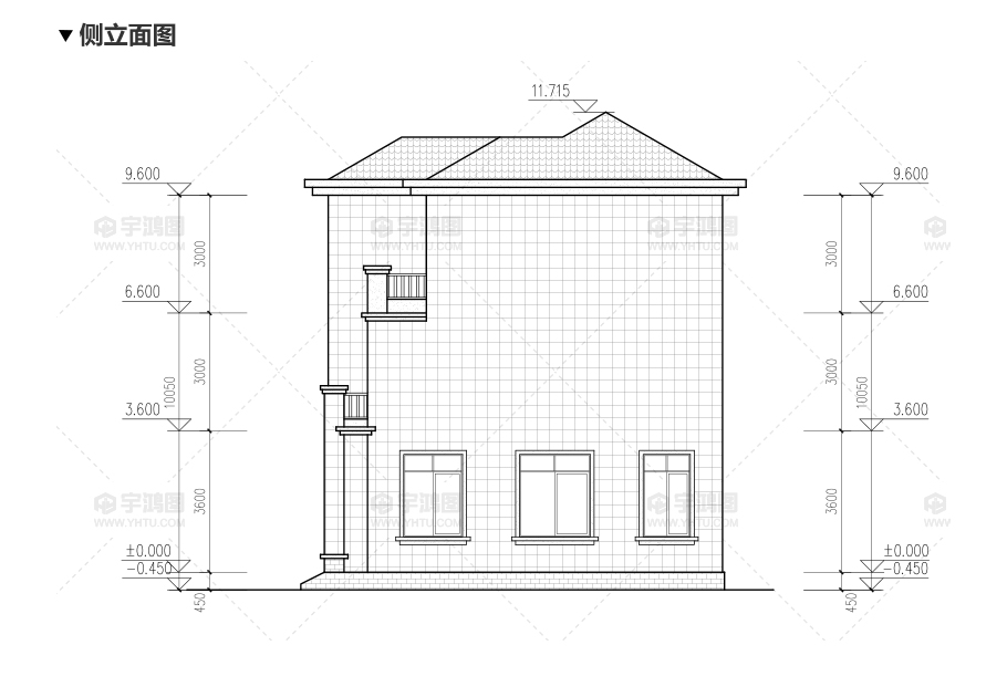 建筑立面圖:東立面圖,西立面圖,南立面圖,北立面圖,剖面圖;