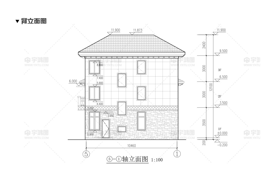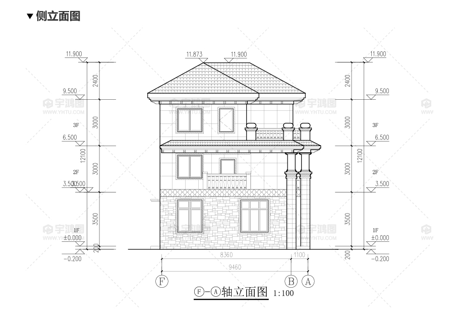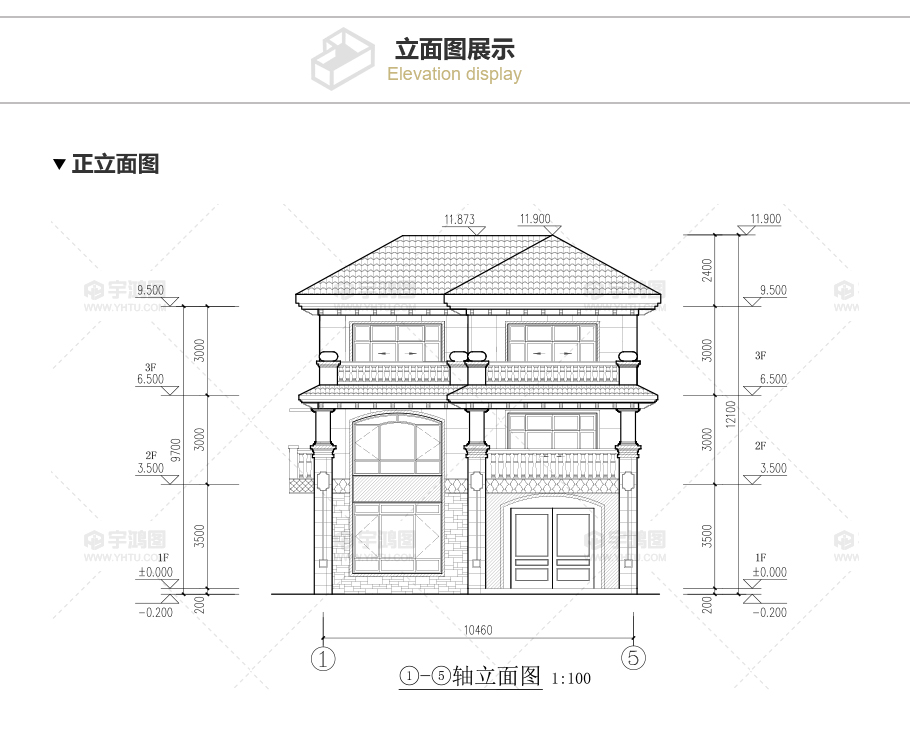 | 風格:歐式 | 層數:三層 | 結構形式:磚混結構 | 圖紙編號:YH-A-3099 |