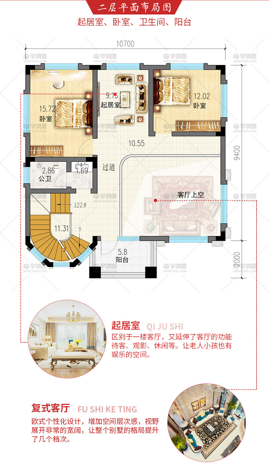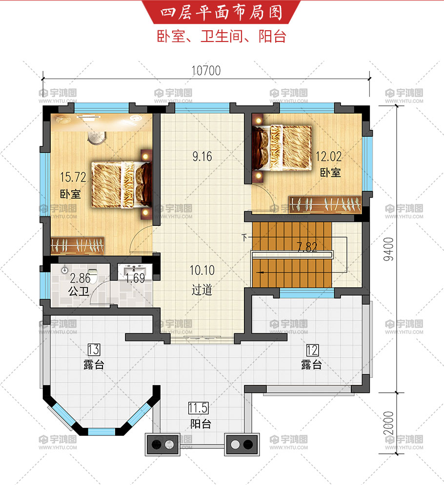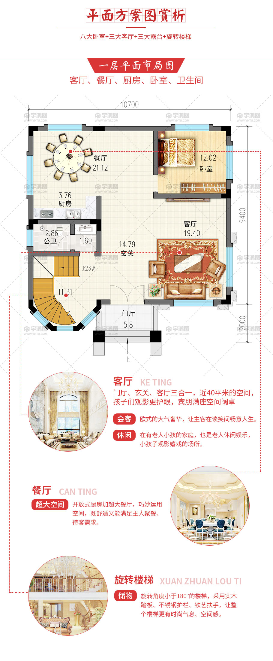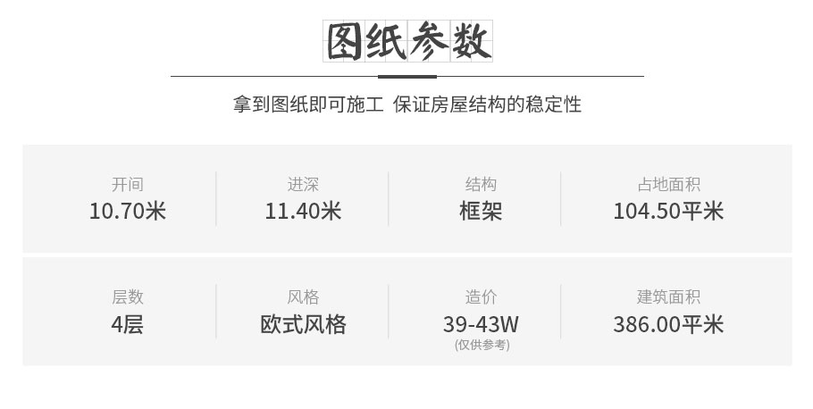 | 開間:10.7米 | 進深:11.4米 | 占地面積:104.5平方米 | 建筑面積:386平方米 |