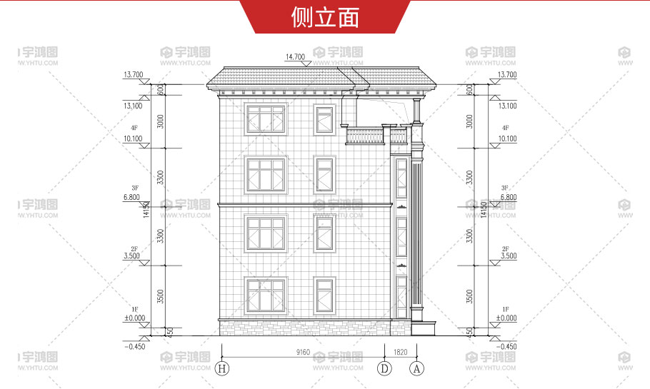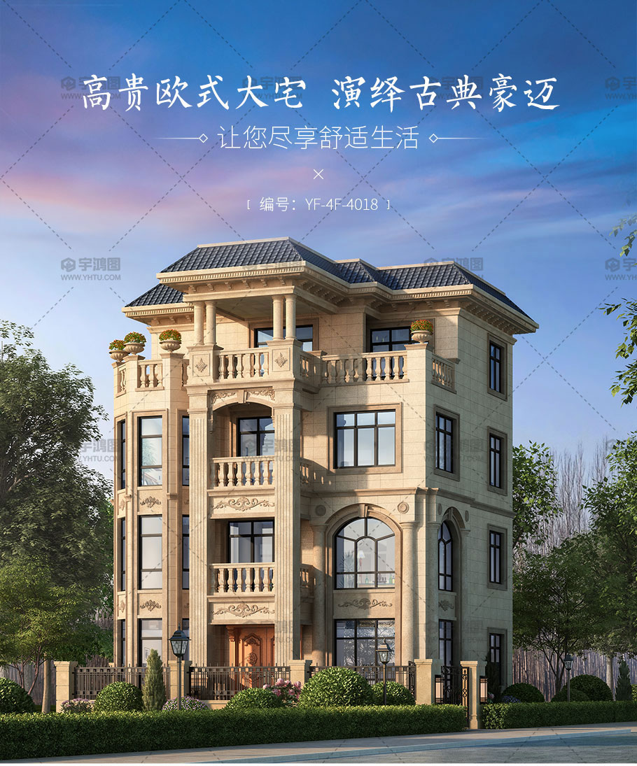 | 風格:歐式 | 層數:四層 | 結構形式:框架結構 | 圖紙編號:YH-A-4018 |