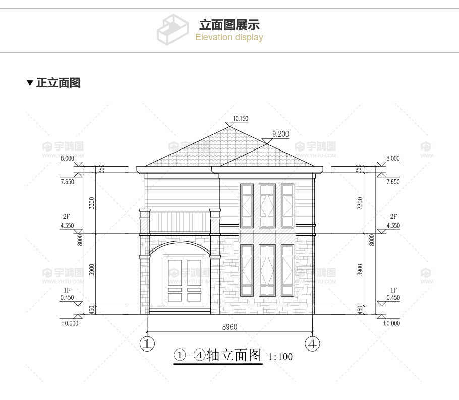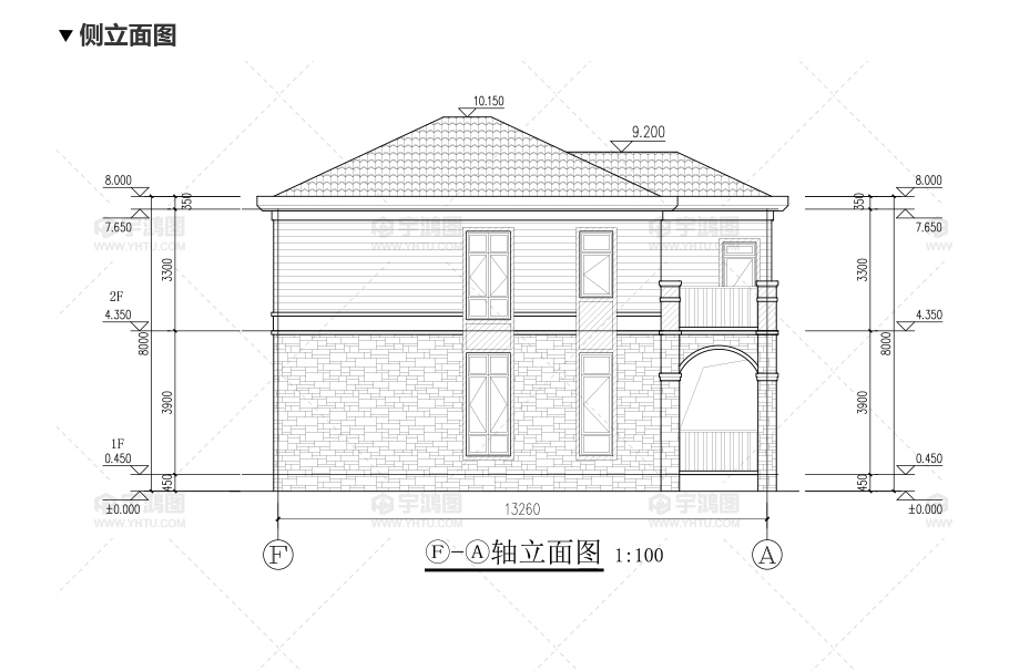 建筑立面圖:東立面圖,西立面圖,南立面圖,北立面圖,剖面圖;
