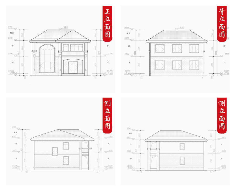 | 建筑圖: | 建筑平面圖:一層平面圖,二層平面圖; 建筑立面圖:東立面圖,西立面圖,南立面圖,北立面圖,剖面圖; 大樣圖:樓梯詳圖,細部大樣,門窗大樣 |