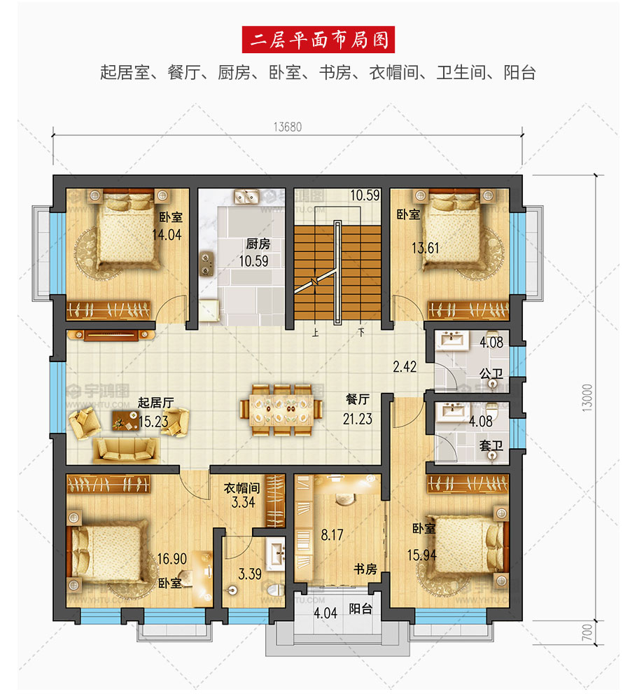 | 開間:13.68米 | 進深:13.7米 | 占地面積:173平方米 | 建筑面積:354.3平方米 |