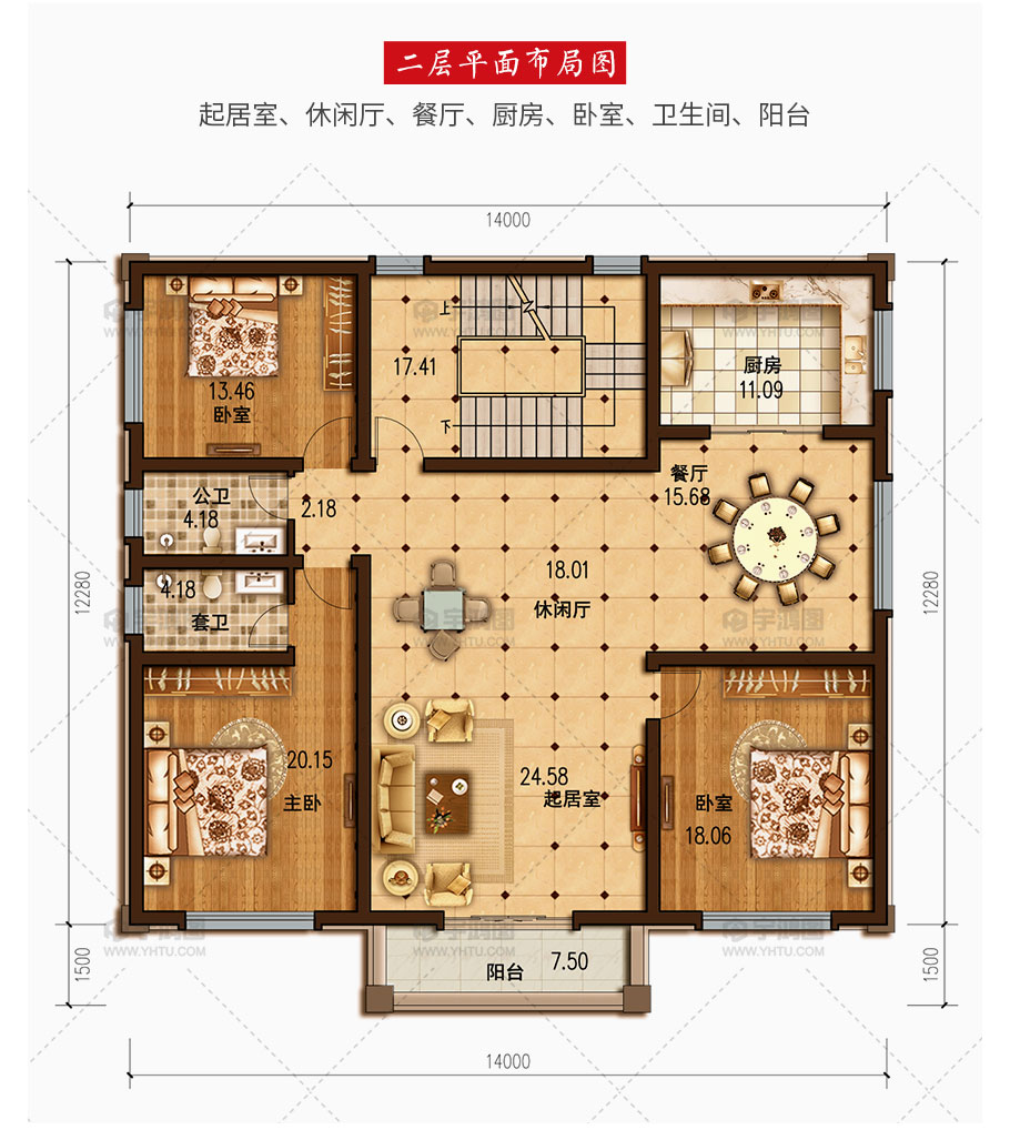 | 風格:歐式 | 層數:三層 | 結構形式:磚混結構 | 圖紙編號:YH-A-3130 |
