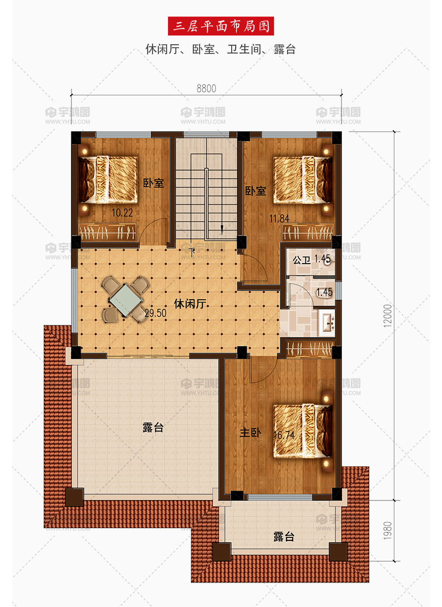 | 開間:8.8米 | 進深:13.98米 | 占地面積:105.6平方米 | 建筑面積:279平方米 |
