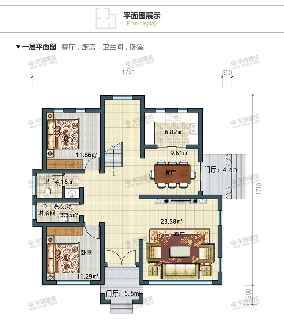 | 開(kāi)間:12.34米 | 進(jìn)深:12.91米 | 占地面積:122.6平方米 | 建筑面積:293.9平方米 |