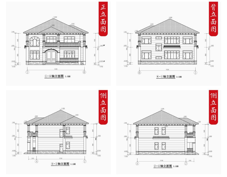 | 建筑圖: | 建筑平面圖:一層平面圖,二層平面圖; 建筑立面圖:東立面圖,西立面圖,南立面圖,北立面圖,剖面圖; 大樣圖:樓梯詳圖,細部大樣,門窗大樣 |