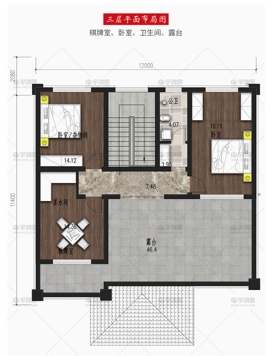 | 開間:12米 | 進深:13.68米 | 占地面積:132平方米 | 建筑面積:360.6平方米 |