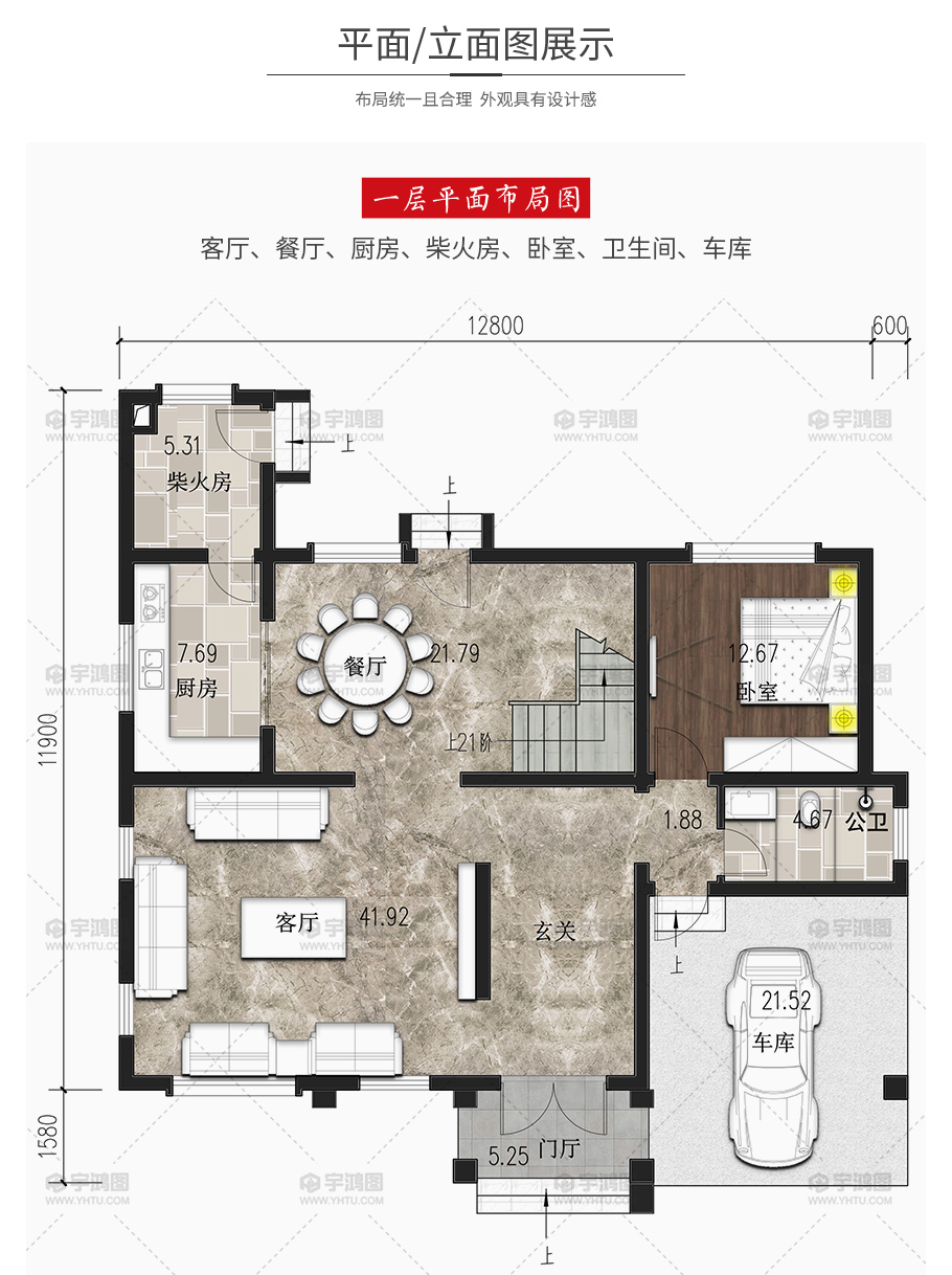 | 開間:13.4米 | 進深:13.48米 | 占地面積:113.6平方米 | 建筑面積:233平方米 |