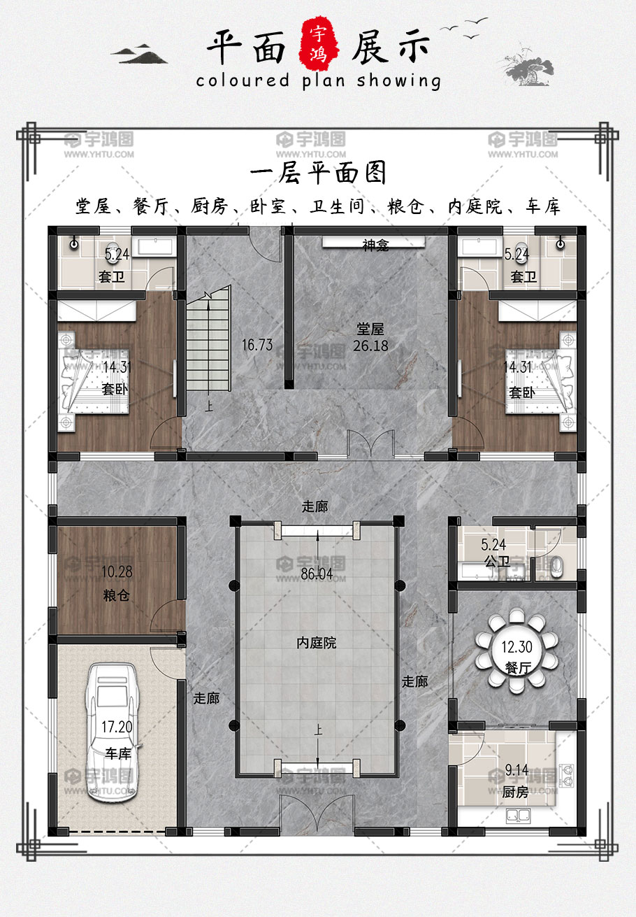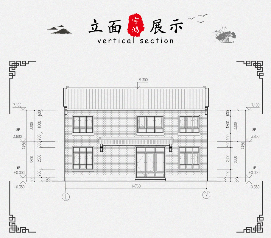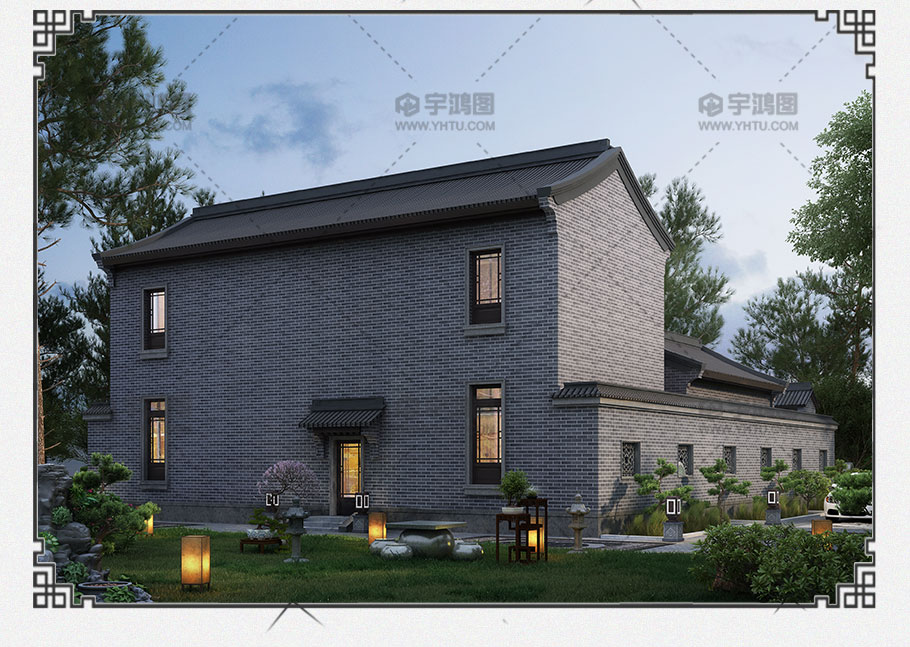 風格:中式 層數:二層 結構形式:磚混結構 圖紙編號:YH-A-2146