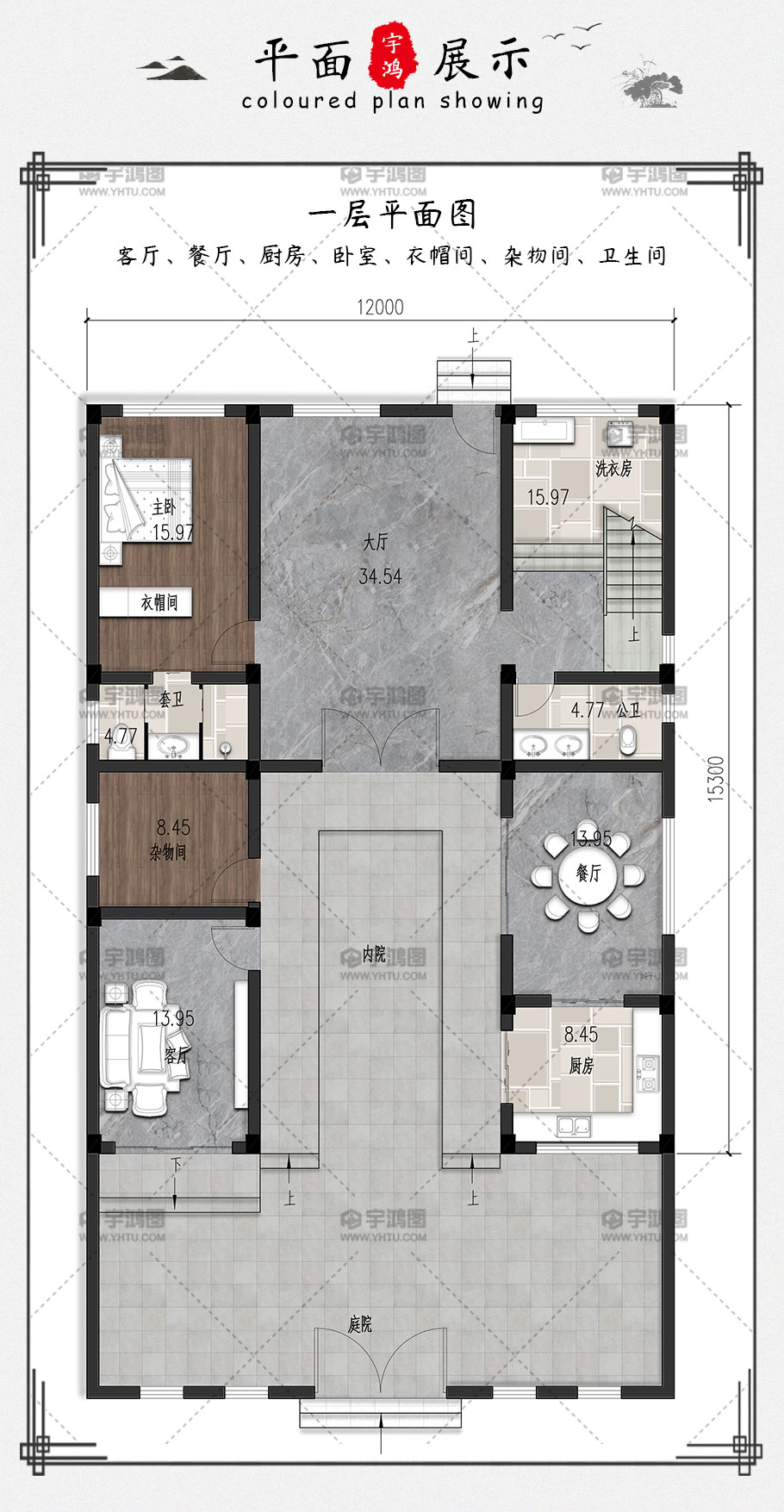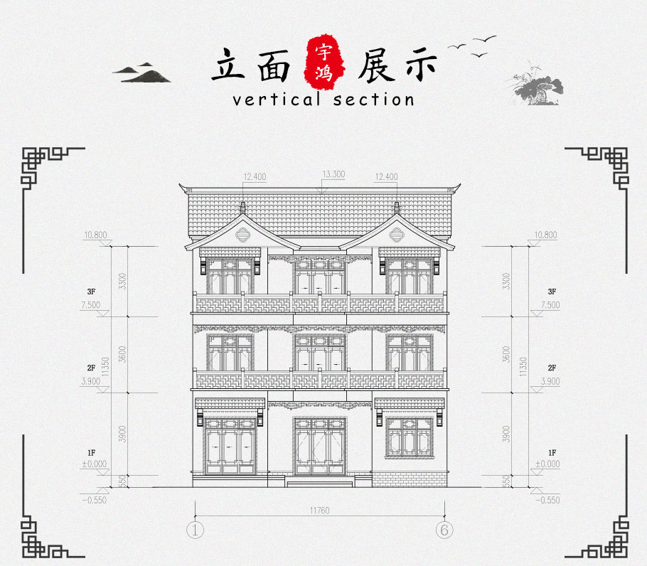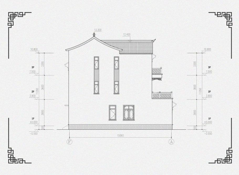 建筑立面圖:東立面圖,西立面圖,南立面圖,北立面圖,剖面圖;