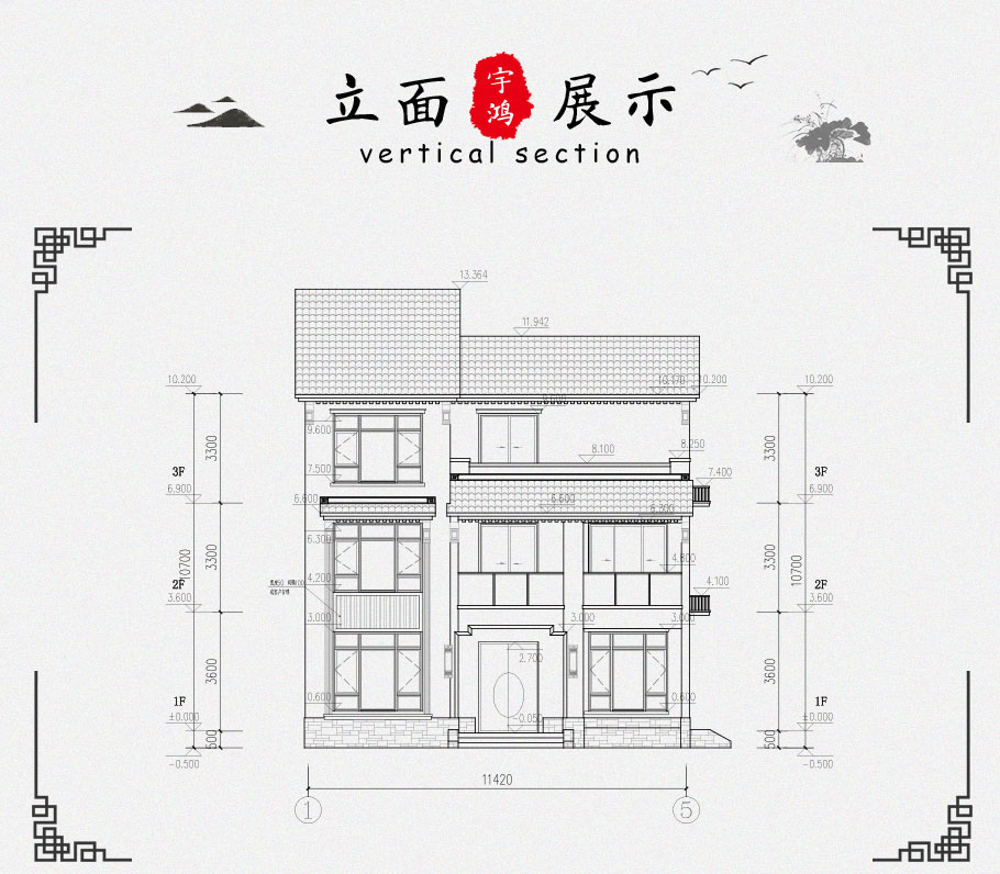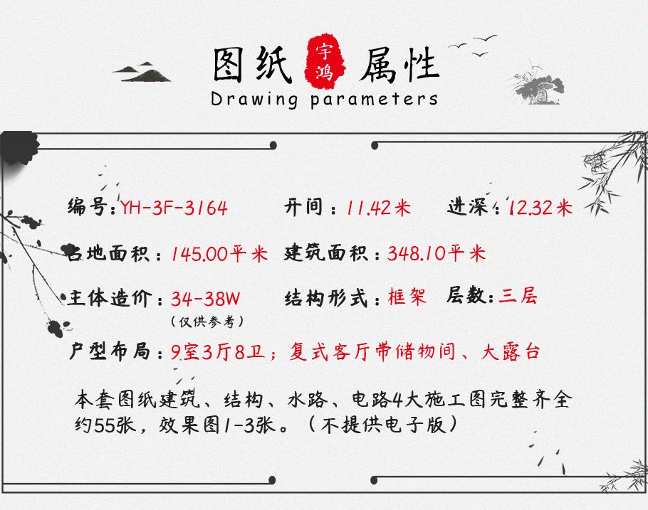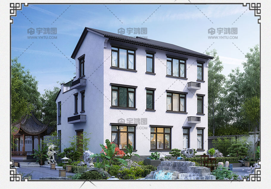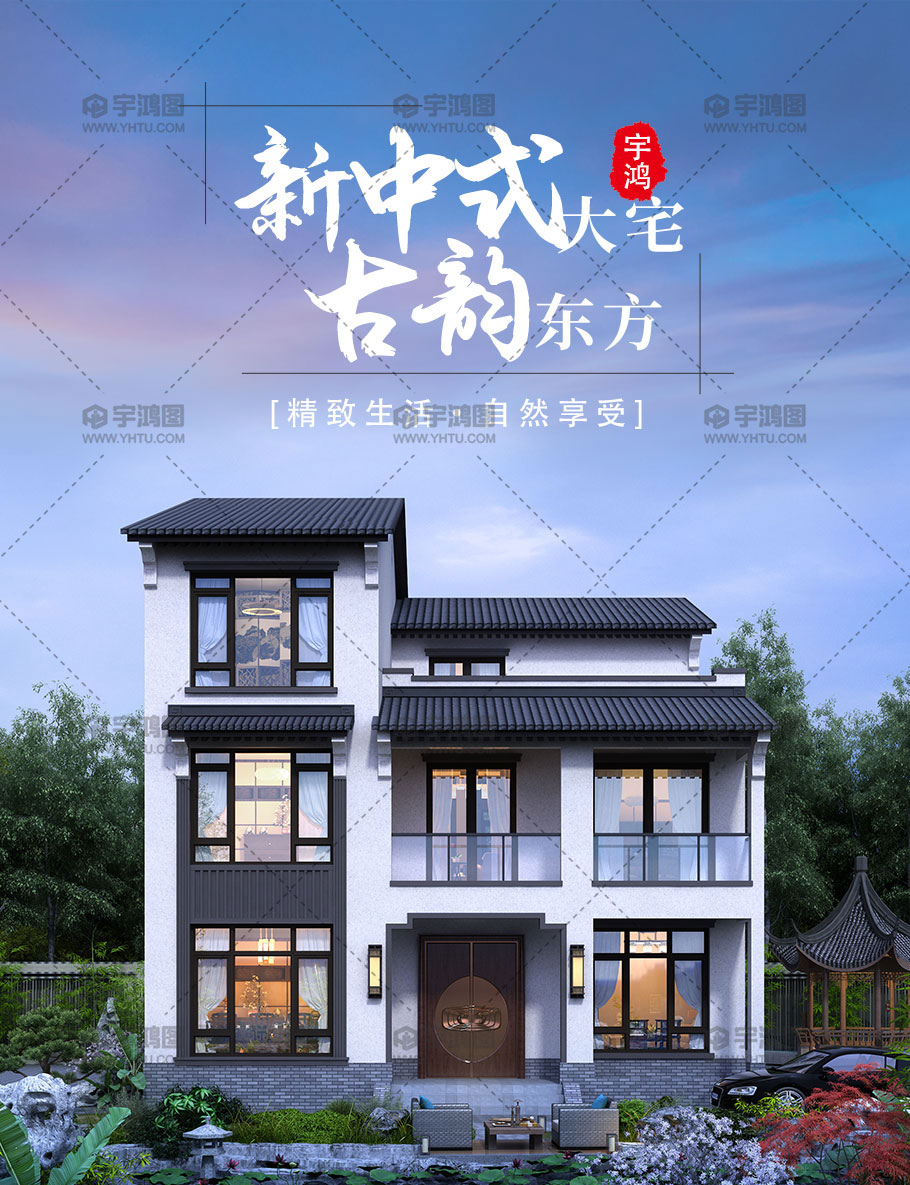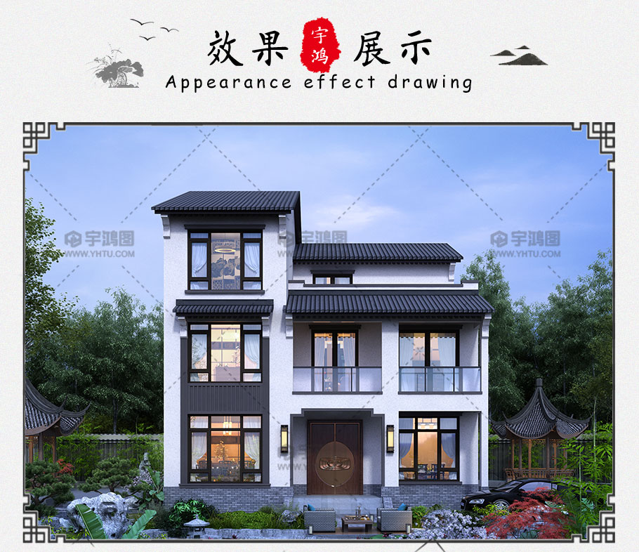 風格:新中式 層數:三層 結構形式:框架結構 圖紙編號:YH-A-3164