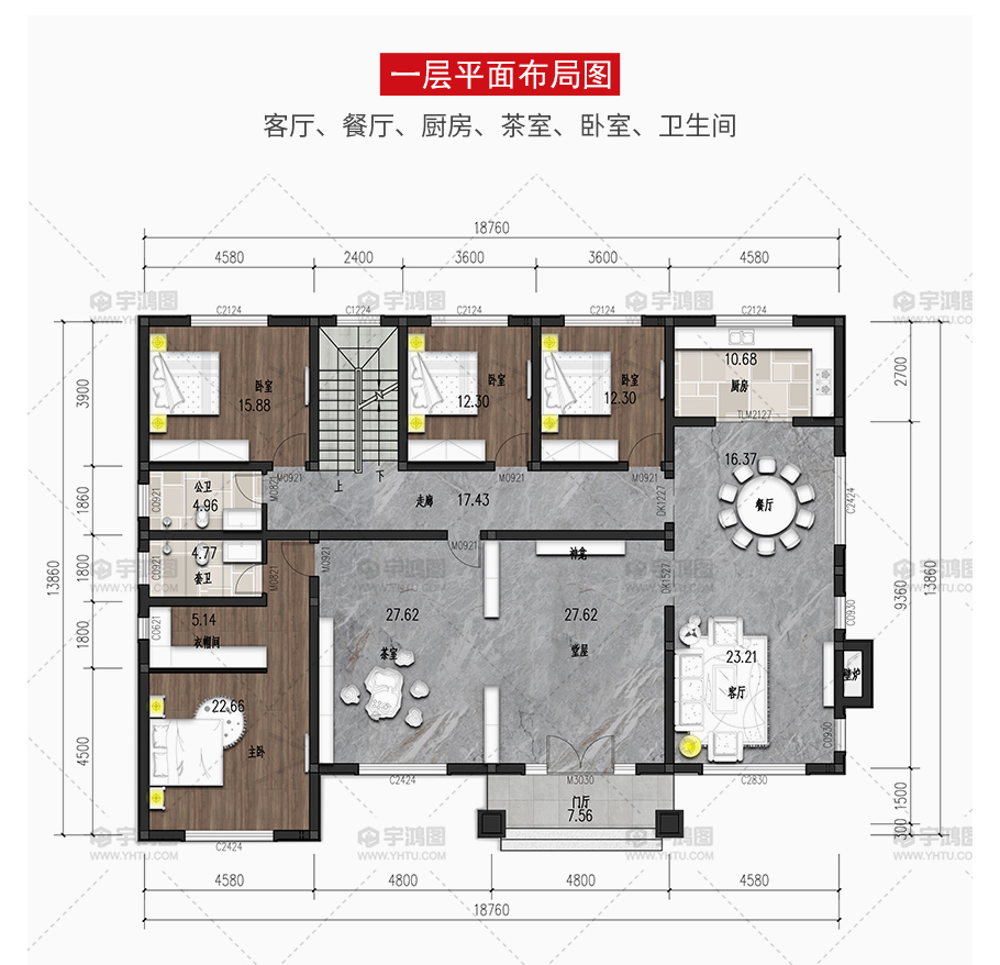 | 風格:簡歐 | 層數:一層 | 結構形式:框架結構 | 圖紙編號:YH-A-1018 |