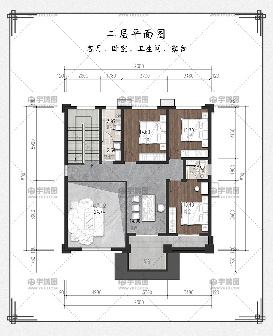 | 風格:新中式 | 層數:二層 | 結構形式:磚混結構 | 圖紙編號:YH-A-2166 |