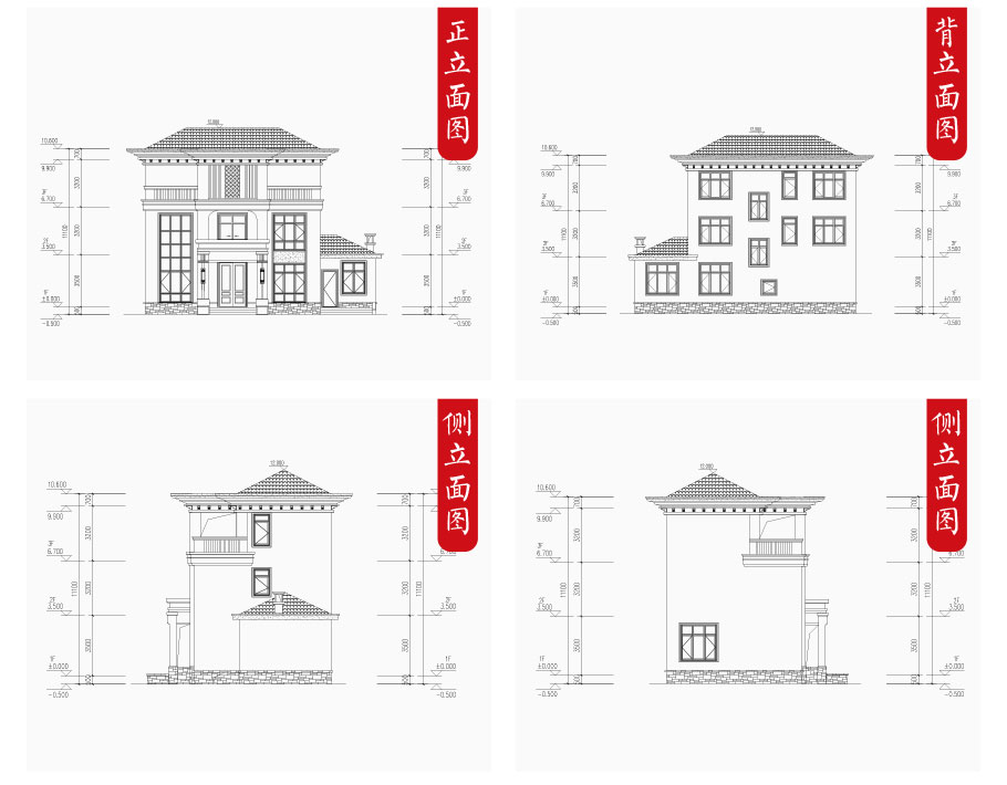 | 建筑圖: | 建筑平面圖:一層平面圖,二層平面圖,三層平面圖; 建筑立面圖:東立面圖,西立面圖,南立面圖,北立面圖,剖面圖; 大樣圖:樓梯詳圖,細部大樣,門窗大樣 |