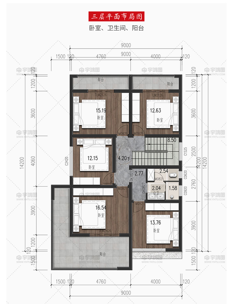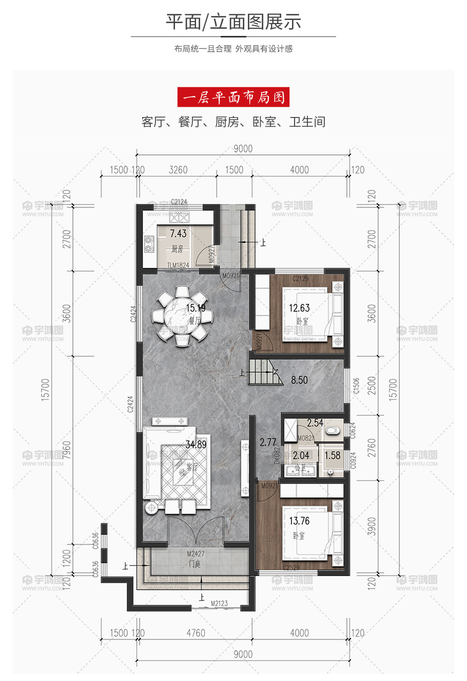 | 開間:9米 | 進深:15.7米 | 占地面積:130.5平方米 | 建筑面積:383.7平方米 |