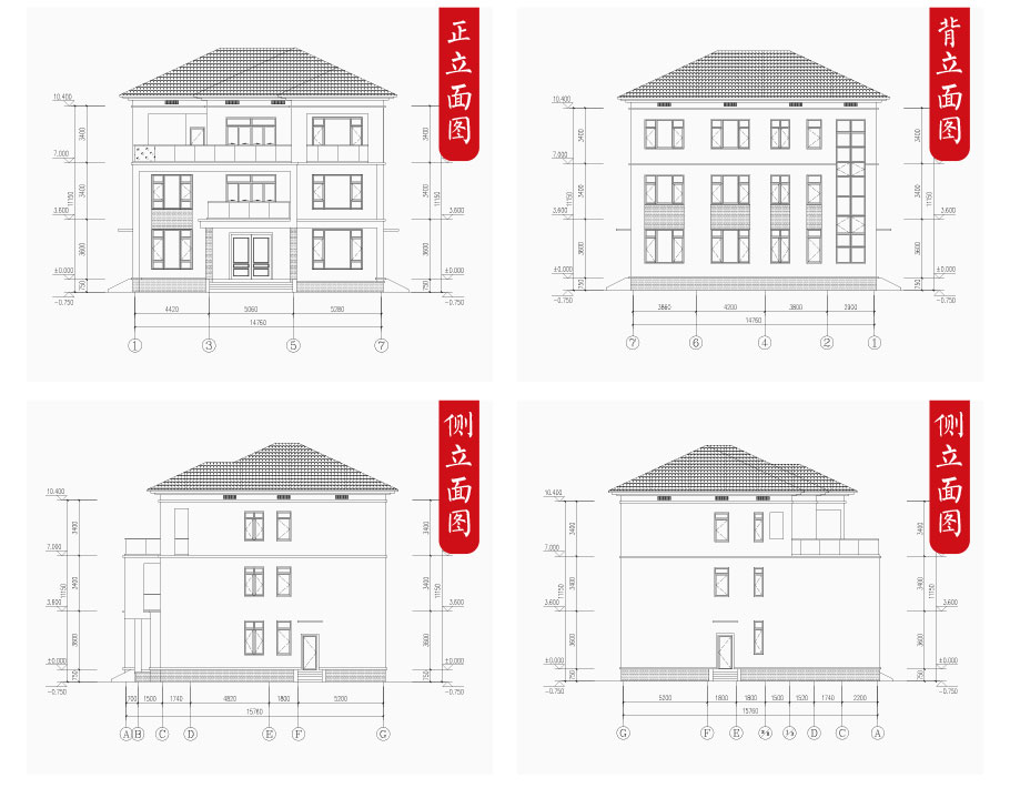 | 建筑圖: | 建筑平面圖:一層平面圖,二層平面圖,三層平面圖; 建筑立面圖:東立面圖,西立面圖,南立面圖,北立面圖,剖面圖; 大樣圖:樓梯詳圖,細部大樣,門窗大樣 |