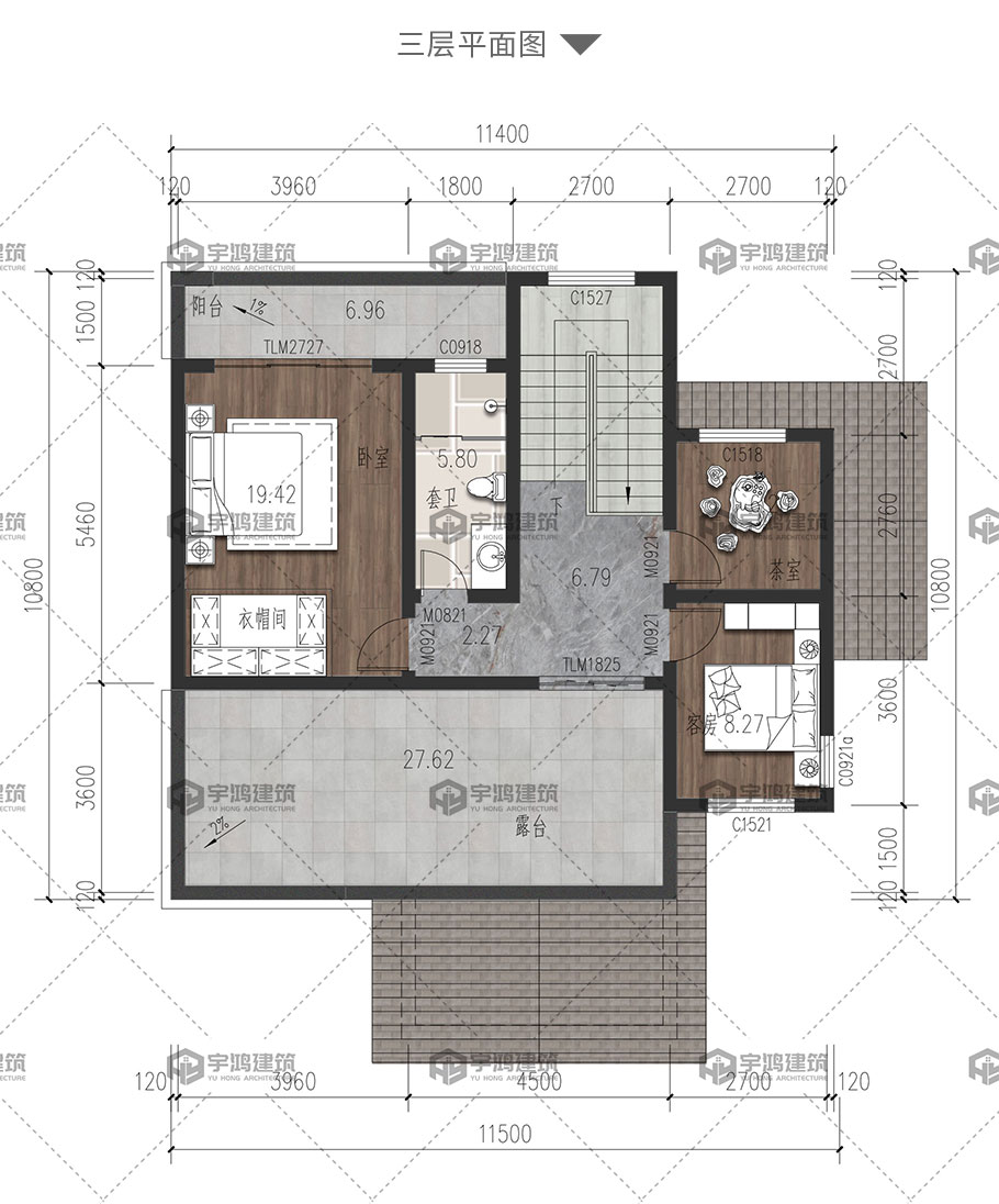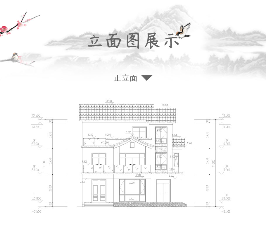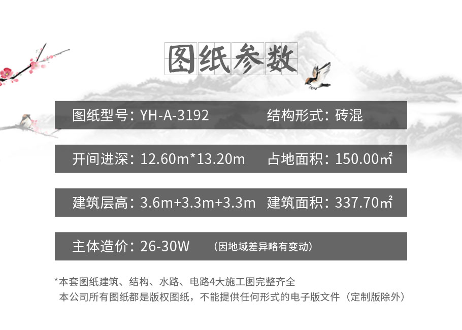 | 風格:新中式 | 層數:三層 | 結構形式:磚混結構 | 圖紙編號:YH-A-3192 |