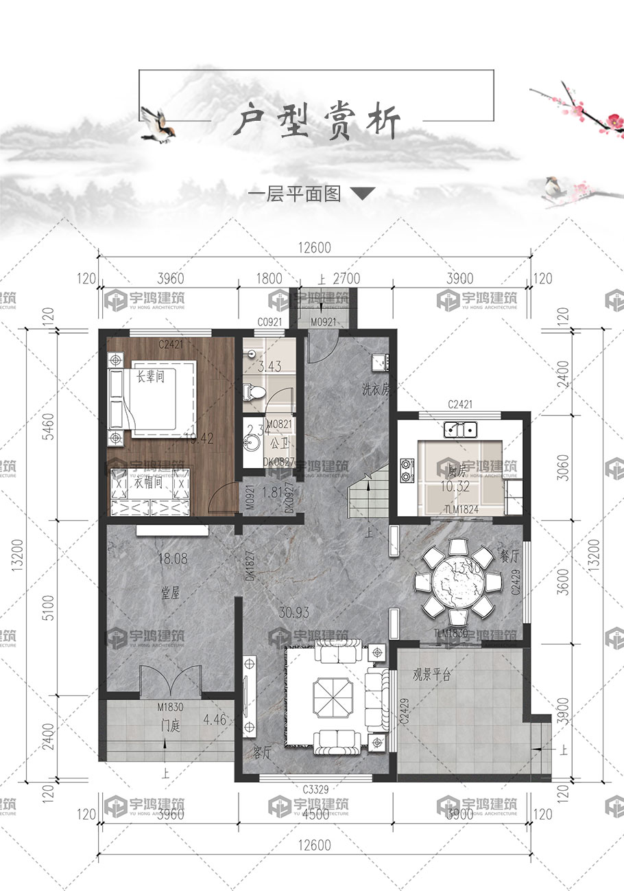 | 開間:12.6米 | 進深:13.2米 | 占地面積:150平方米 | 建筑面積:337.7平方米 |