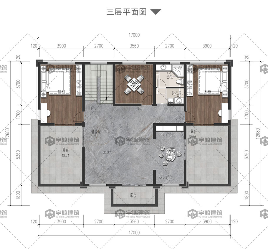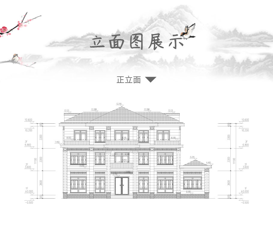 成品圖紙>新款新中式三層農(nóng)村別墅設(shè)計效果圖