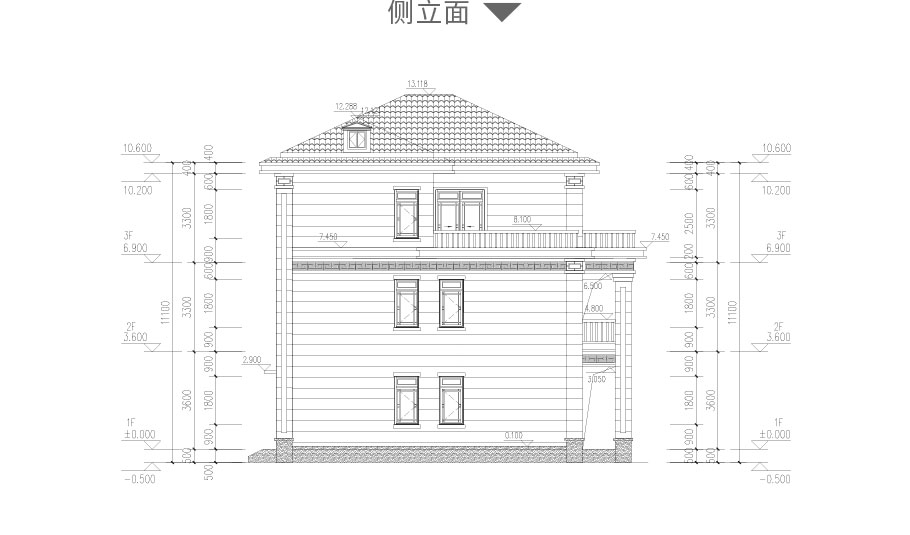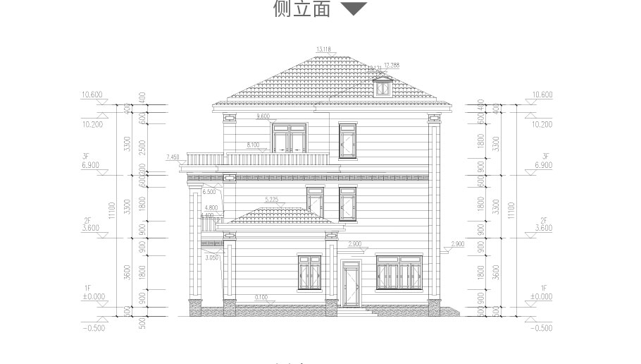 建筑立面圖:東立面圖,西立面圖,南立面圖,北立面圖,剖面圖;