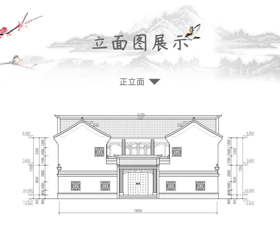 建筑立面圖:東立面圖,西立面圖,南立面圖,北立面圖,剖面圖;