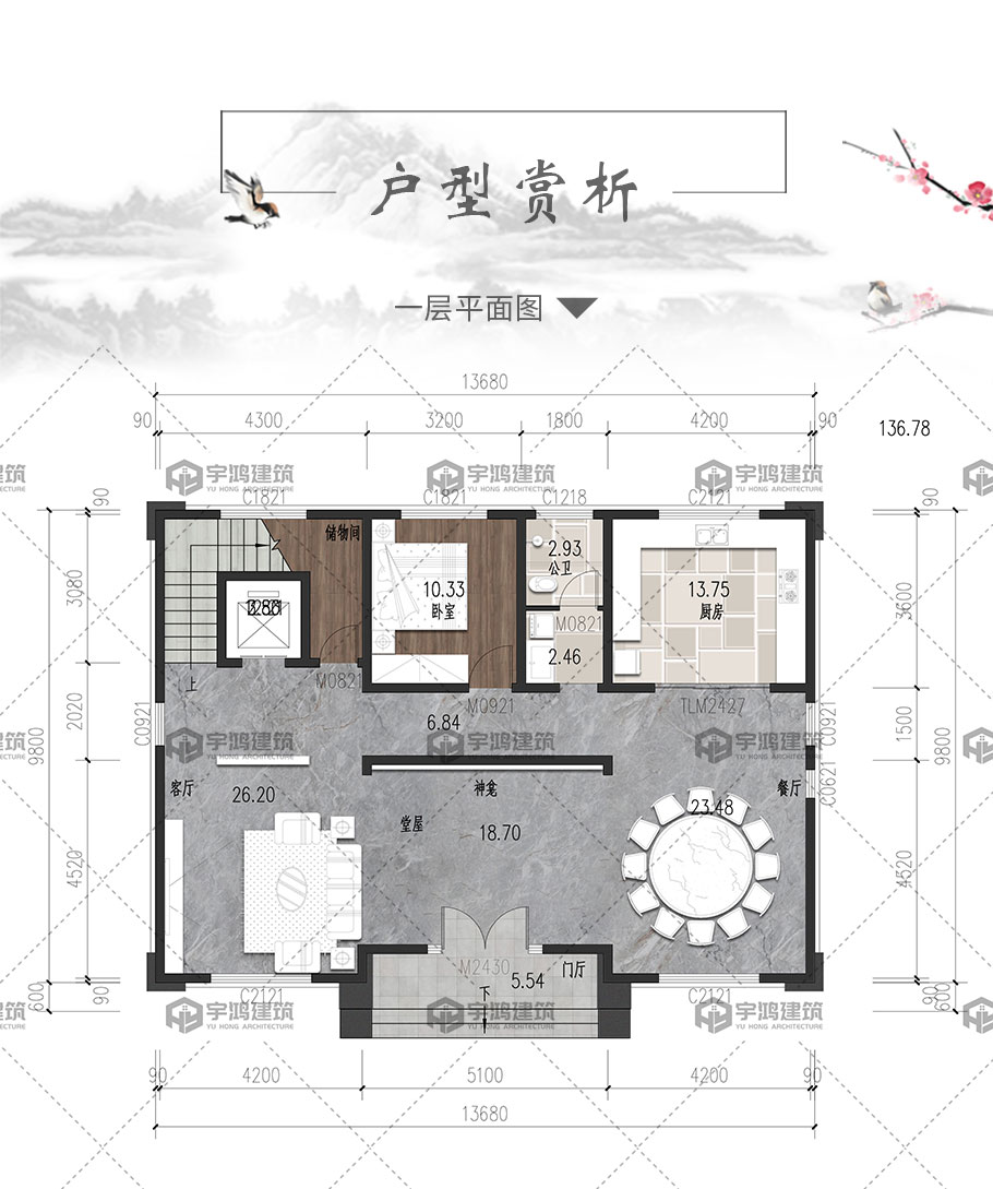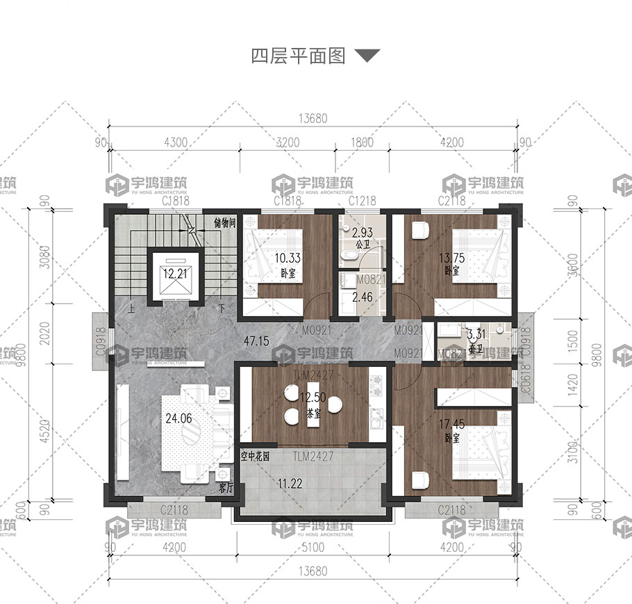 建筑平面圖:一層平面圖,二層平面圖,三層平面圖,四層平面圖;