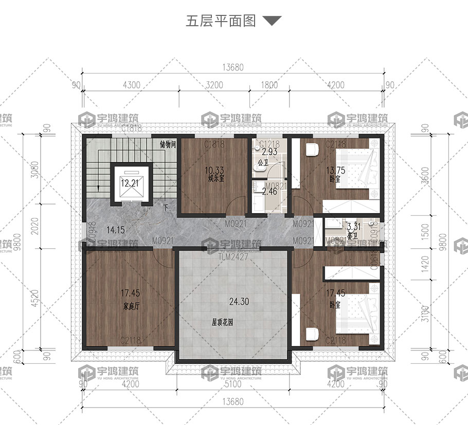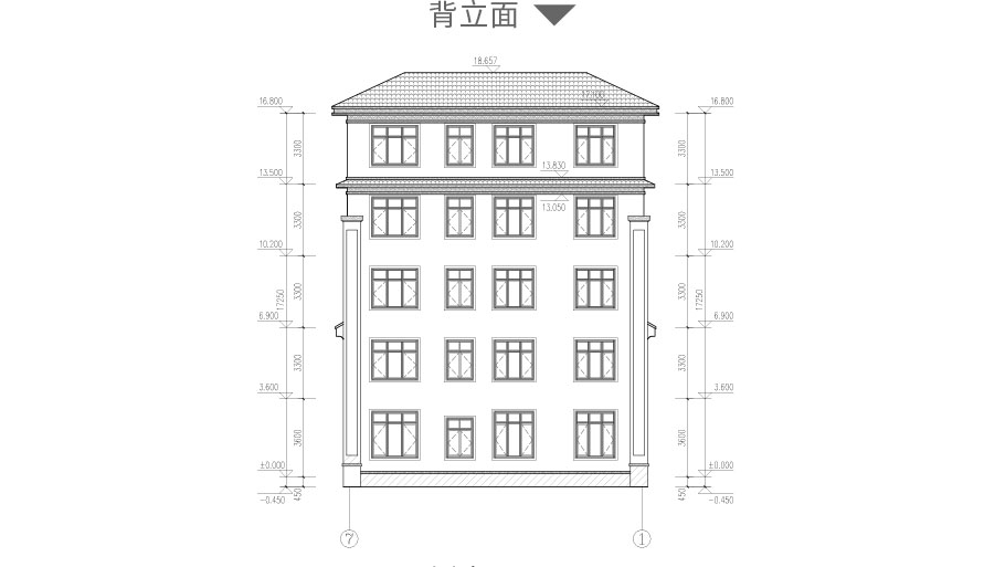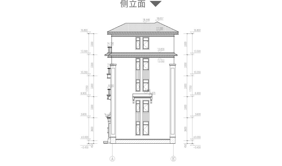 建筑立面圖:東立面圖,西立面圖,南立面圖,北立面圖,剖面圖;