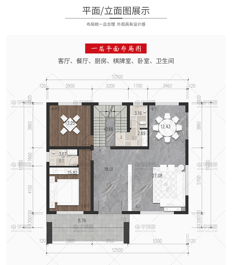 建筑立面圖:東立面圖,西立面圖,南立面圖,北立面圖,剖面圖;