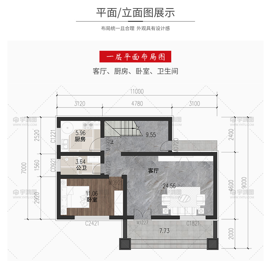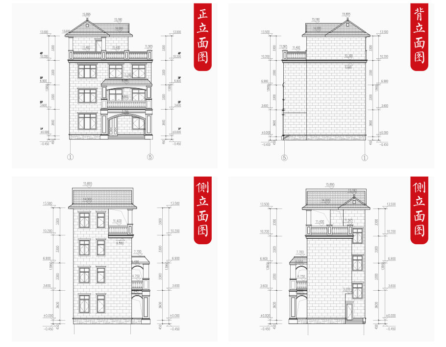 建筑立面圖:東立面圖,西立面圖,南立面圖,北立面圖,剖面圖;
