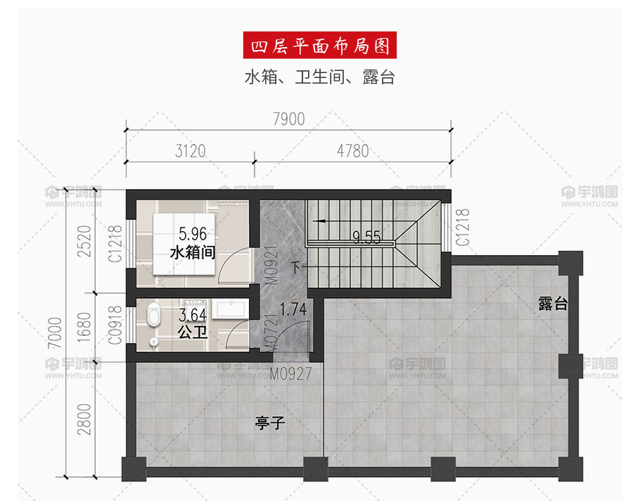 建筑平面圖:一層平面圖,二層平面圖,三層平面圖,四層平面圖;