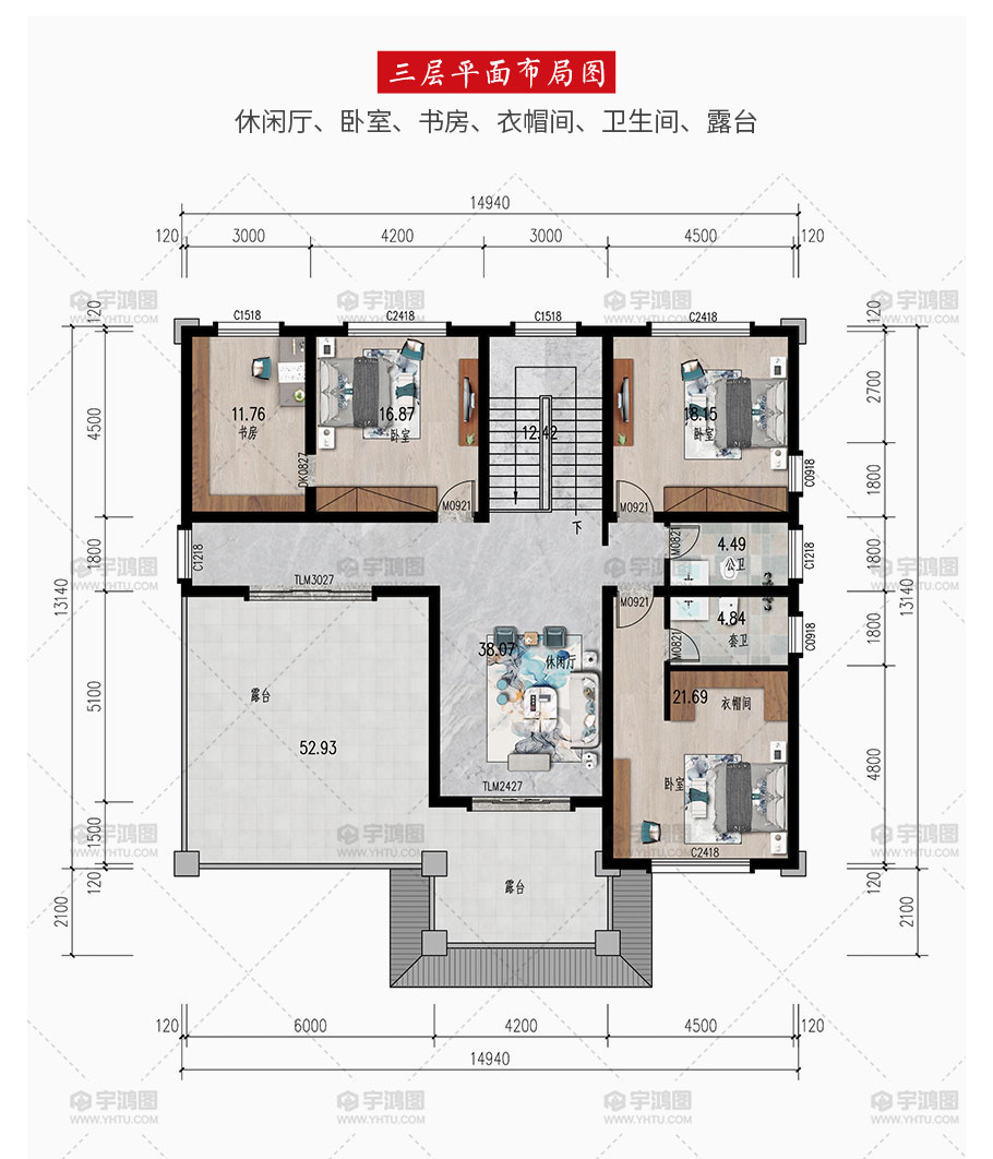 | 開間:14.94米 | 進深:13.14米 | 占地面積:206平方米 | 建筑面積:515.03平方米 |