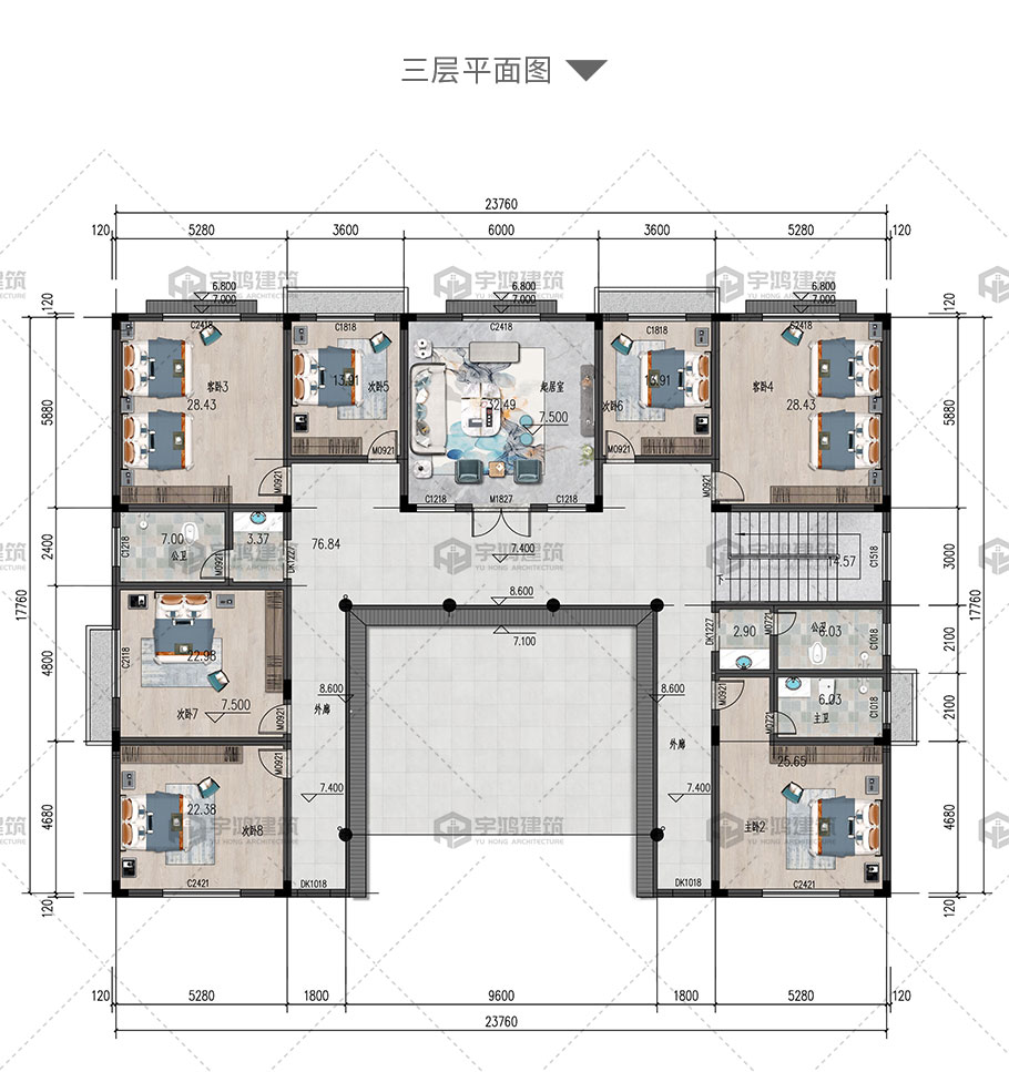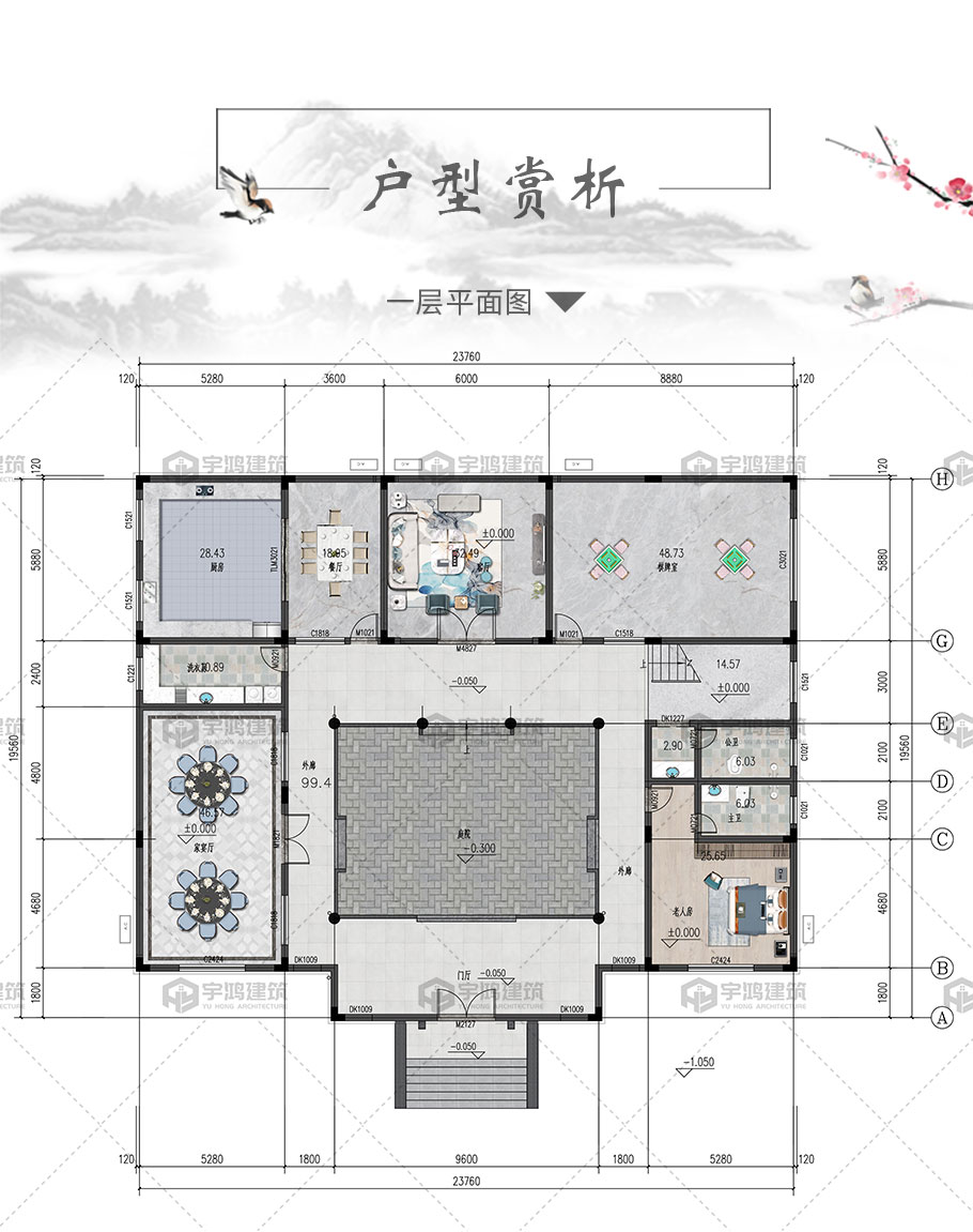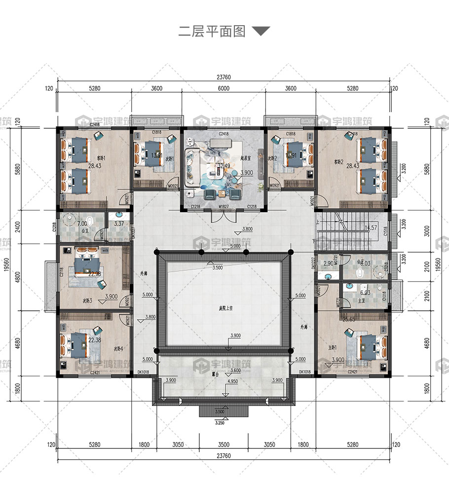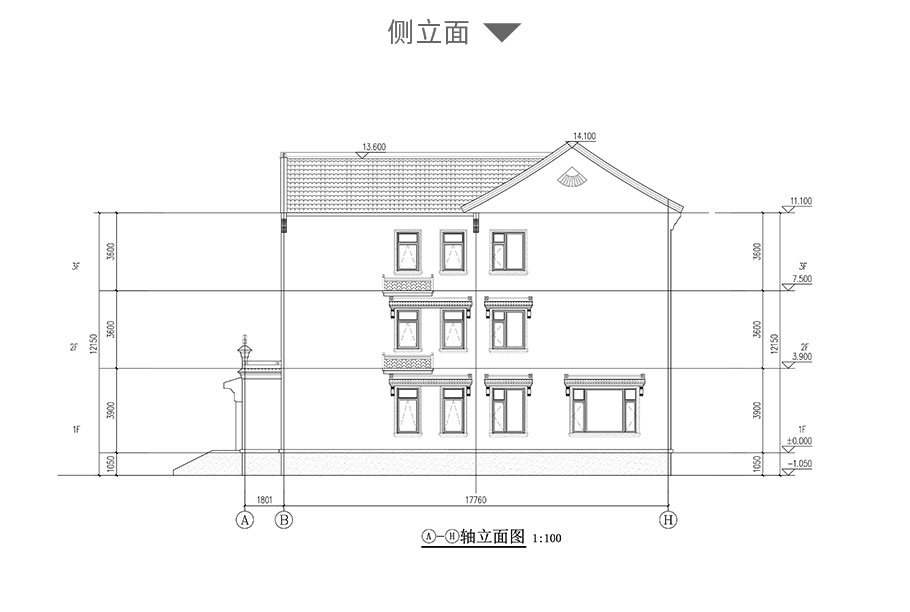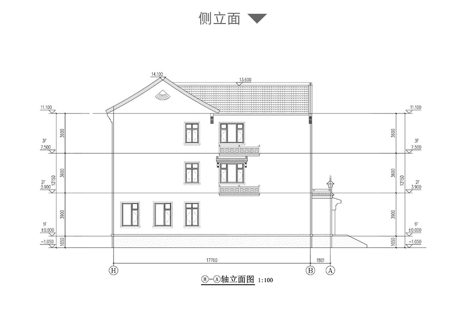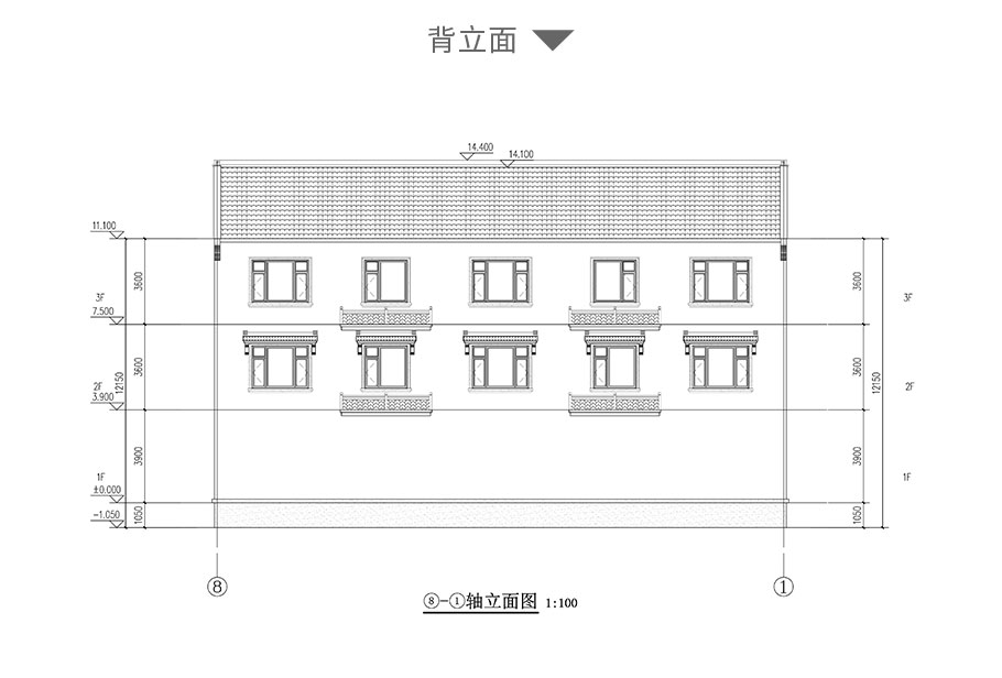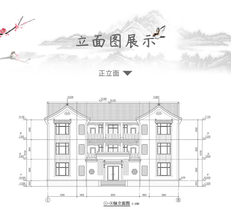 建筑立面圖:東立面圖,西立面圖,南立面圖,北立面圖,剖面圖;