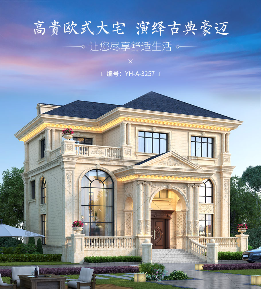 風格:歐式 層數:三層 結構形式:框架結構 圖紙編號:YH-A-3257