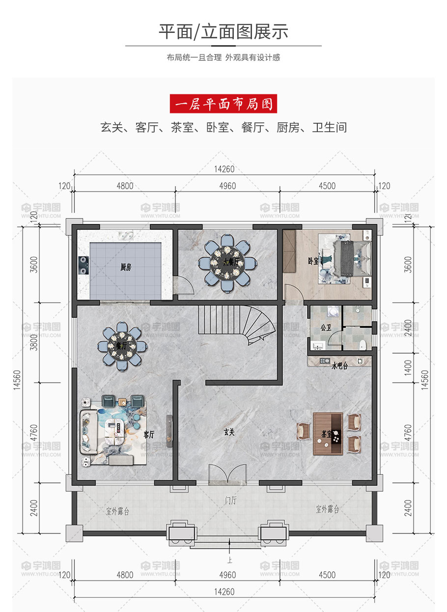開間:14.26米 進深:14.56米 占地面積:186平方米 建筑面積:500平方米