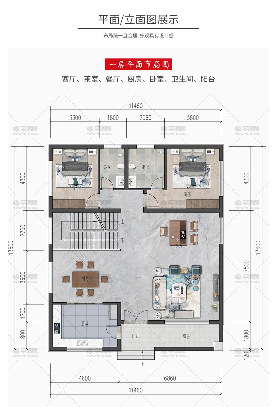 | 開間:11.46米 | 進深:13.6米 | 占地面積:155.75平方米 | 建筑面積:535.1平方米 |
