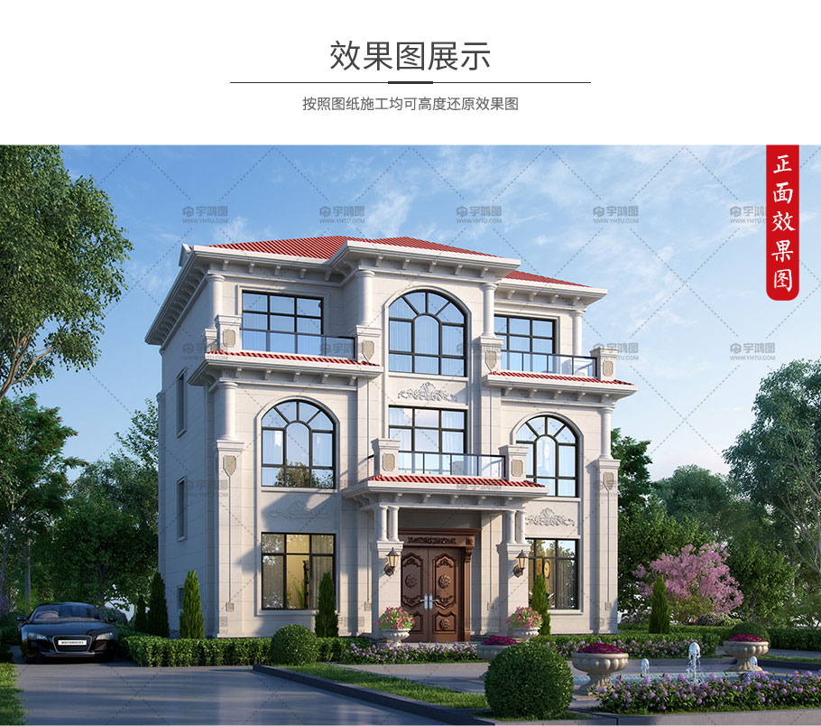 成品圖紙>三層磚混結(jié)構(gòu)歐式別墅占地150平自建別墅