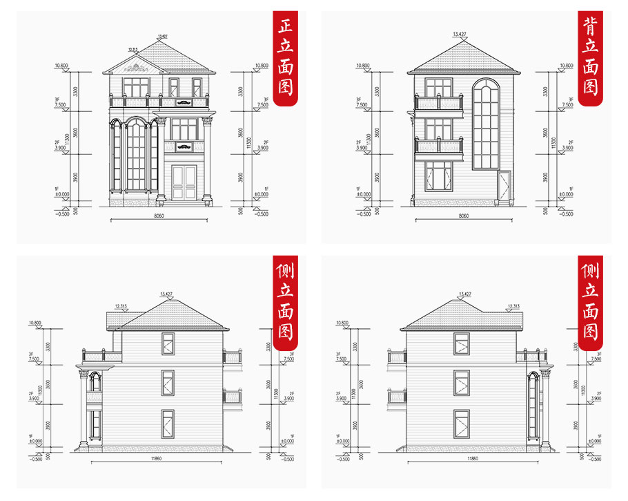 本案簡介: 三層磚混結構歐式別墅占地98平自建別墅