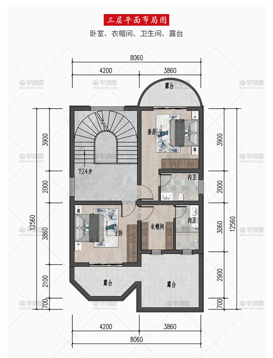 風格:歐式 層數:三層 結構形式:磚混結構 圖紙編號:YH-A-3261
