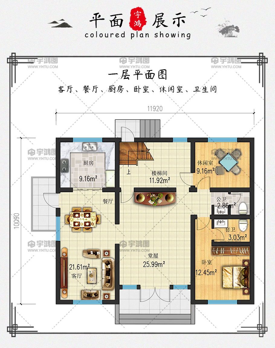 戶型為12x10米四層中式農村別墅設計圖紙,豪華大氣帶堂屋,戶型設計精美闊氣,一二三層設有落地大窗,二三層四層分別有陽臺、大露臺,采光充足,室內敞亮。外立面色彩搭配富有質感,室內功能齊全,空間劃分合理,房間尺寸適宜,空間利用率高。